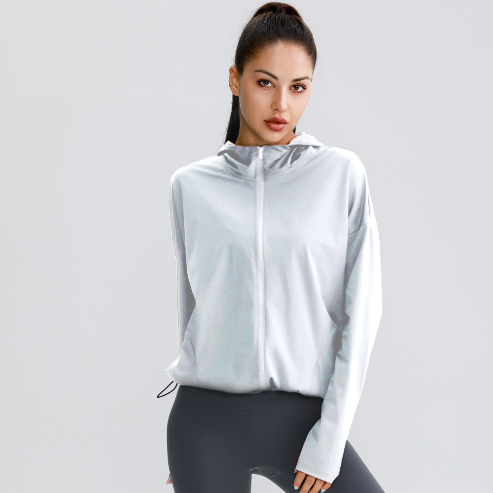 Главная страница > Солнцезащитная одежда на молнии с капюшоном Спортивная быстросохнущая куртка для фитнеса Одежда для йоги Женская Повседневная Свободная куртка для бега Фитнес