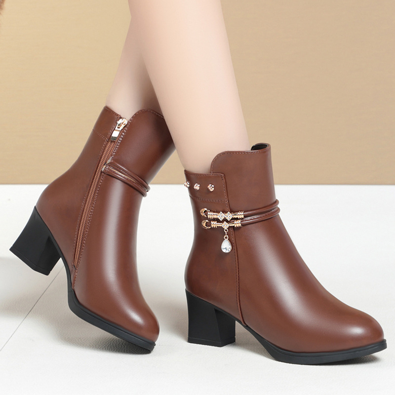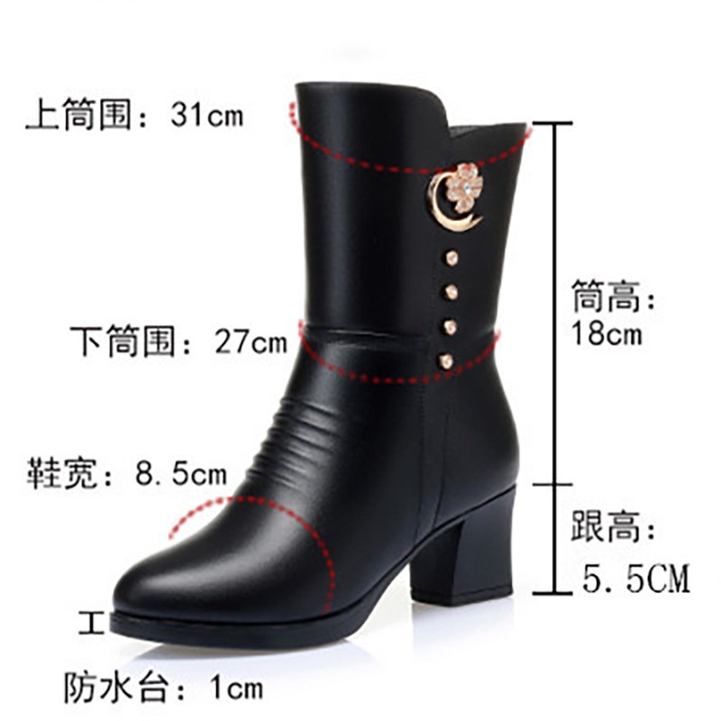 Главная страница > Трансграничная Внешняя торговля Новые хлопчатобумажные сапоги больших размеров, утолщенные на флисовой подкладке, женские кожаные сапоги на среднем каблуке со стразами и жемчугом, сапоги на толстом каблуке со средним стволом 42