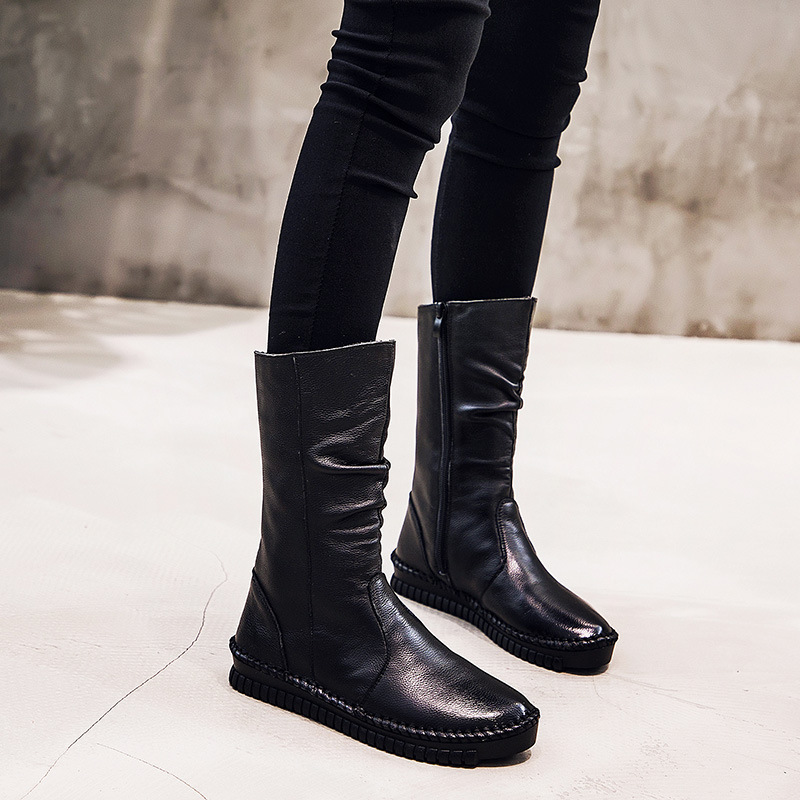 Главная страница > Зимние кожаные длинные кожаные сапоги ручной работы с боковой молнией на флисовой подкладке, женские туфли на плоской подошве больших размеров, длинные сапоги, ботинки Martin, женские ботинки