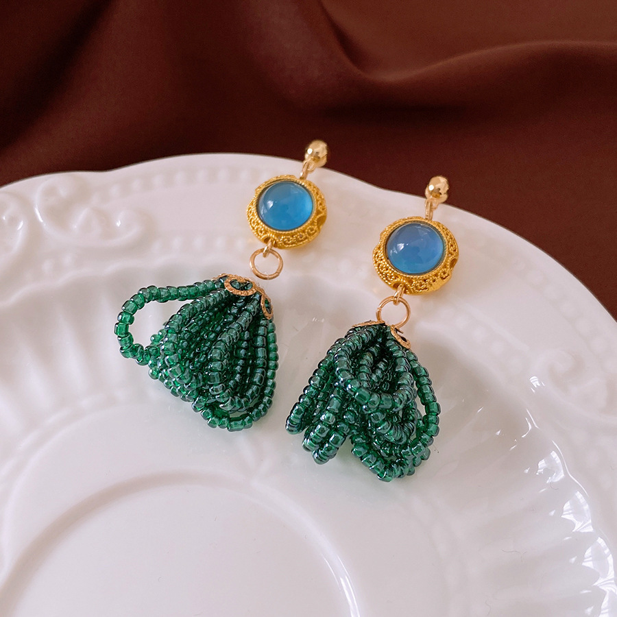 14#Ушной крючок-зеленый-капля воды