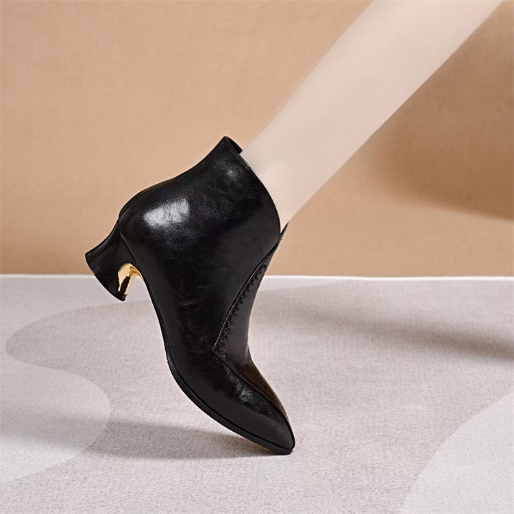 Главная страница > Короткие женские ботинки на толстом каблуке в стиле ретро с острым носком, новые женские ботинки большого размера с боковой молнией 2025 года, очень удобные для ношения во французском стиле.