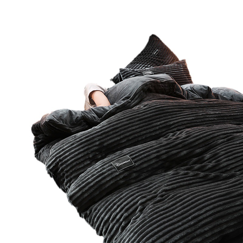 Комплект постельного белья из четырех предметов: однотонное зимнее покрывало из кроличьего меха, трехслойный двусторонний флисовый пододеяльник, теплый и утолщенный.