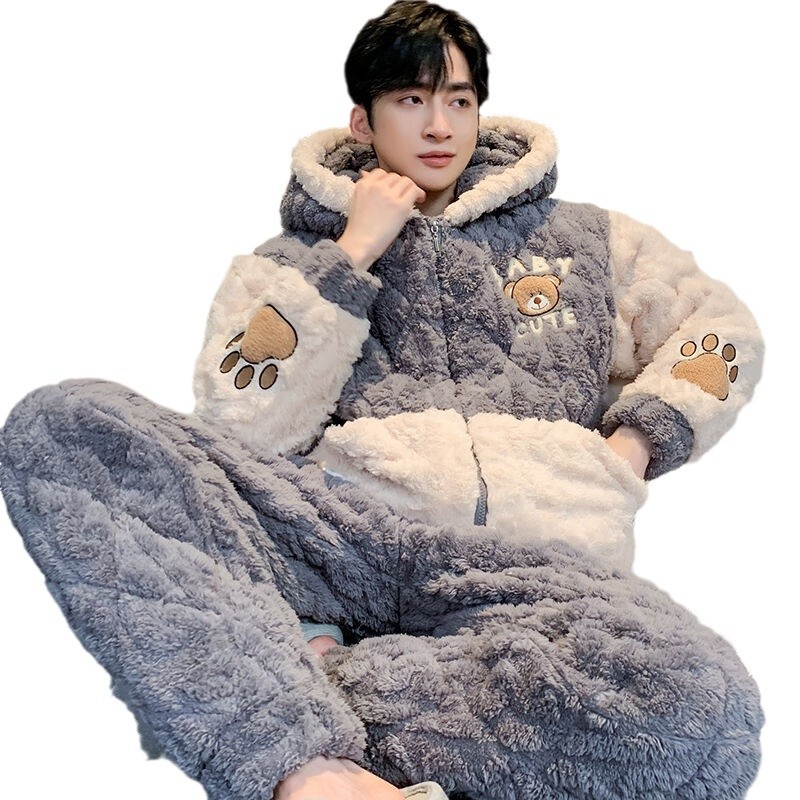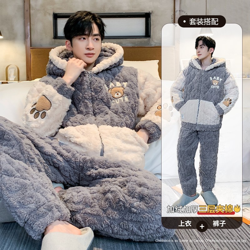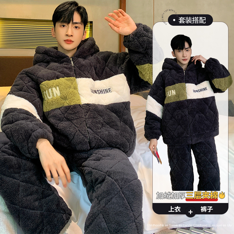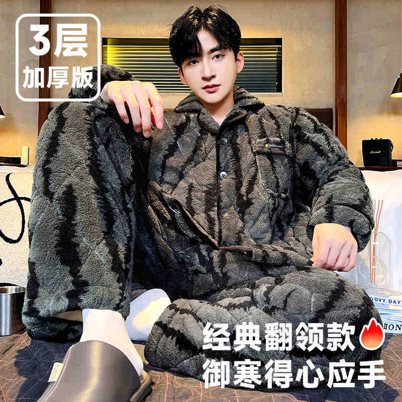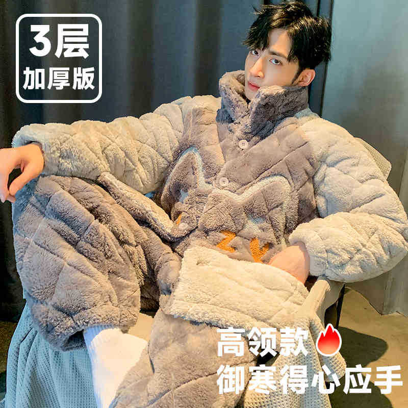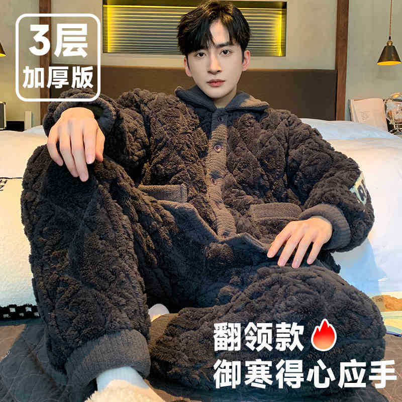Главная страница > Мужские зимние пижамы на утолщенной флисовой подкладке, трехслойные стеганые теплые коралловые бархатные осенне-зимние мужские комплекты домашней одежды на молнии