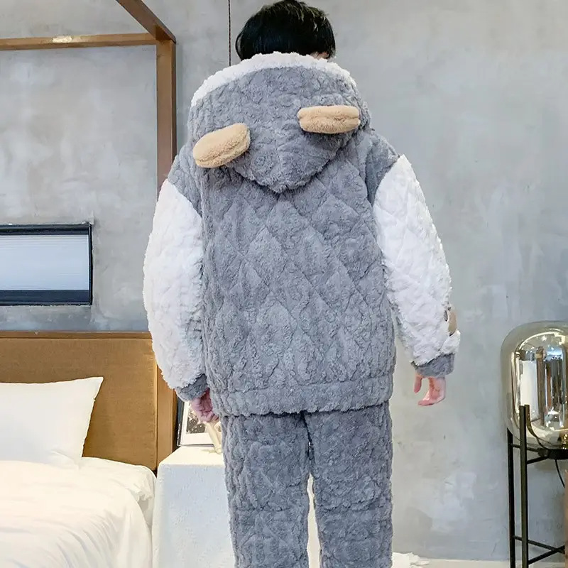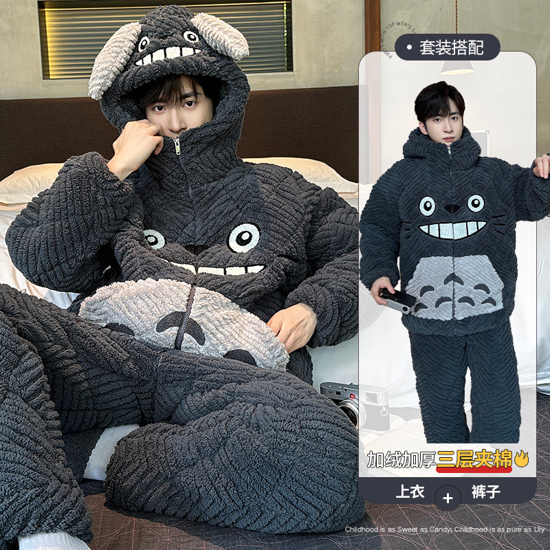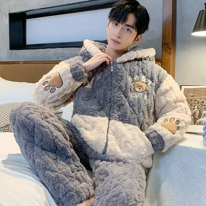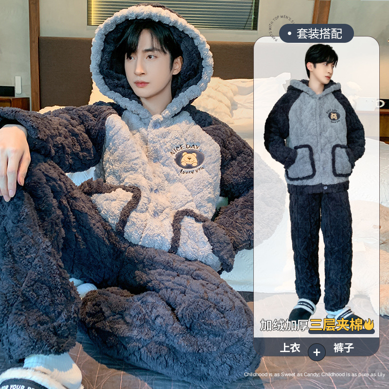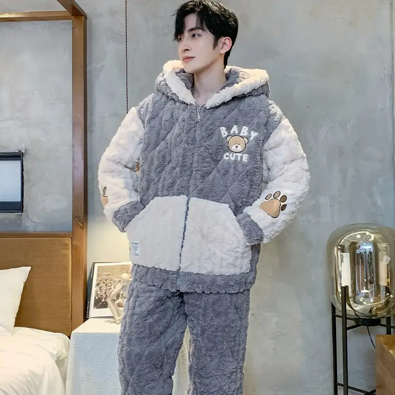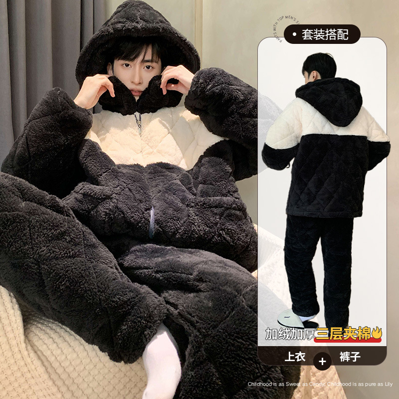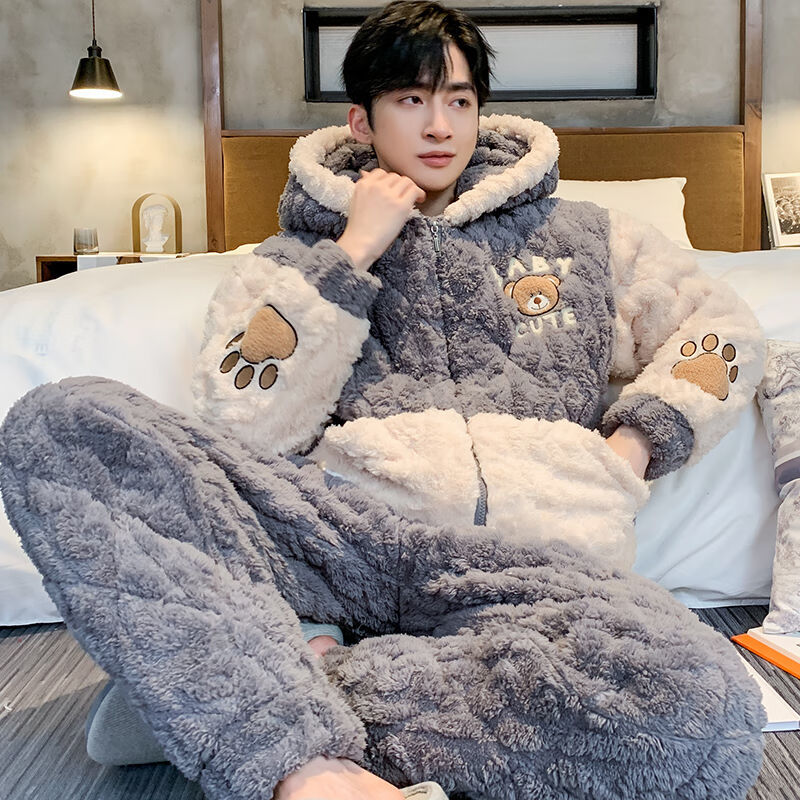 Главная страница > Мужские зимние пижамы на утолщенной флисовой подкладке, трехслойные стеганые теплые коралловые бархатные осенне-зимние мужские комплекты домашней одежды на молнии