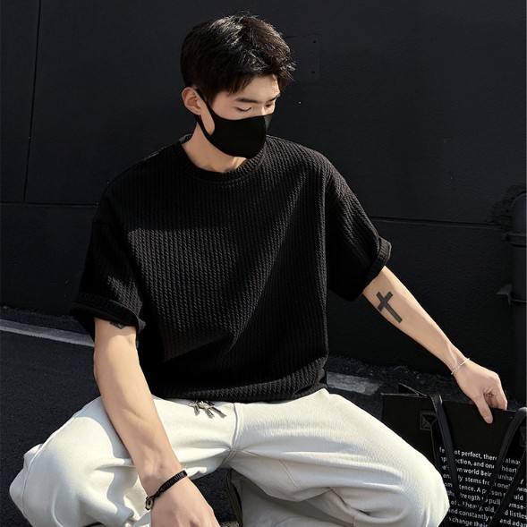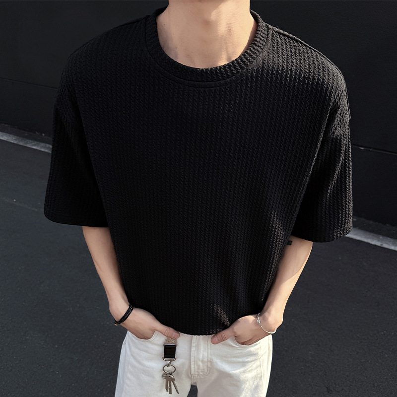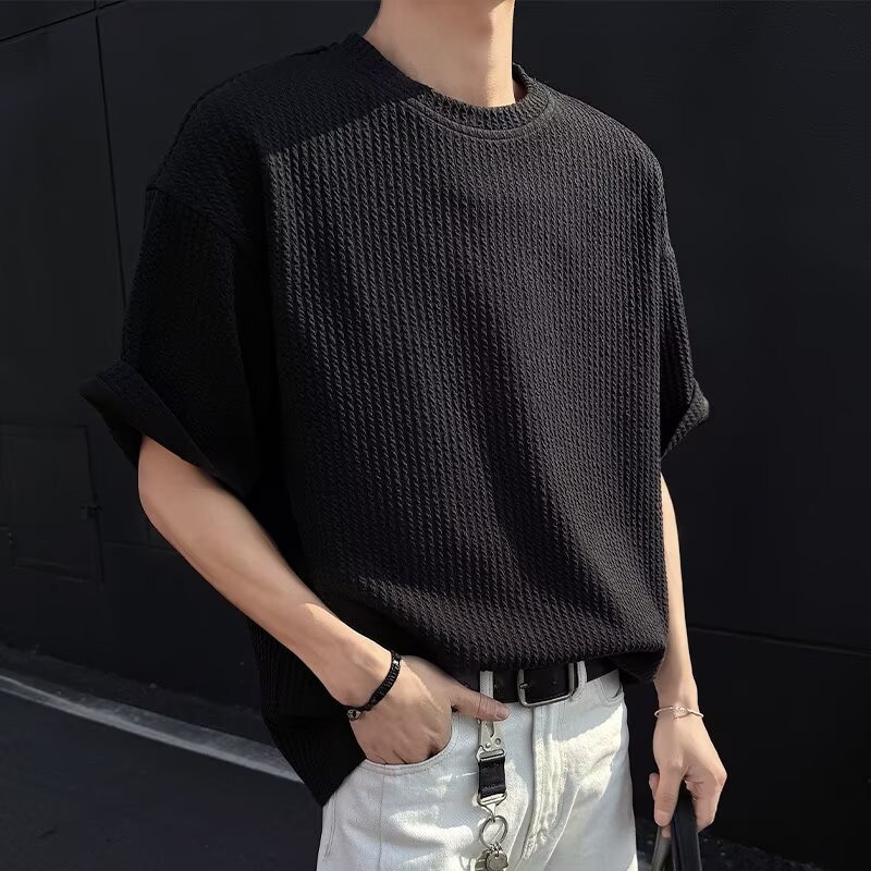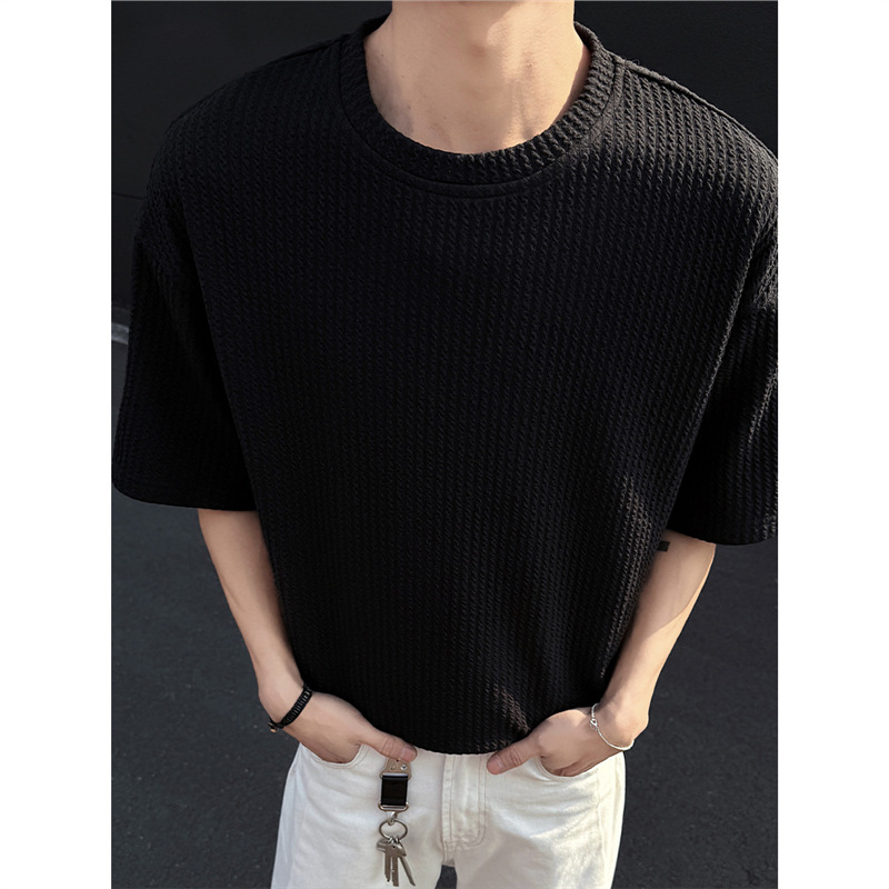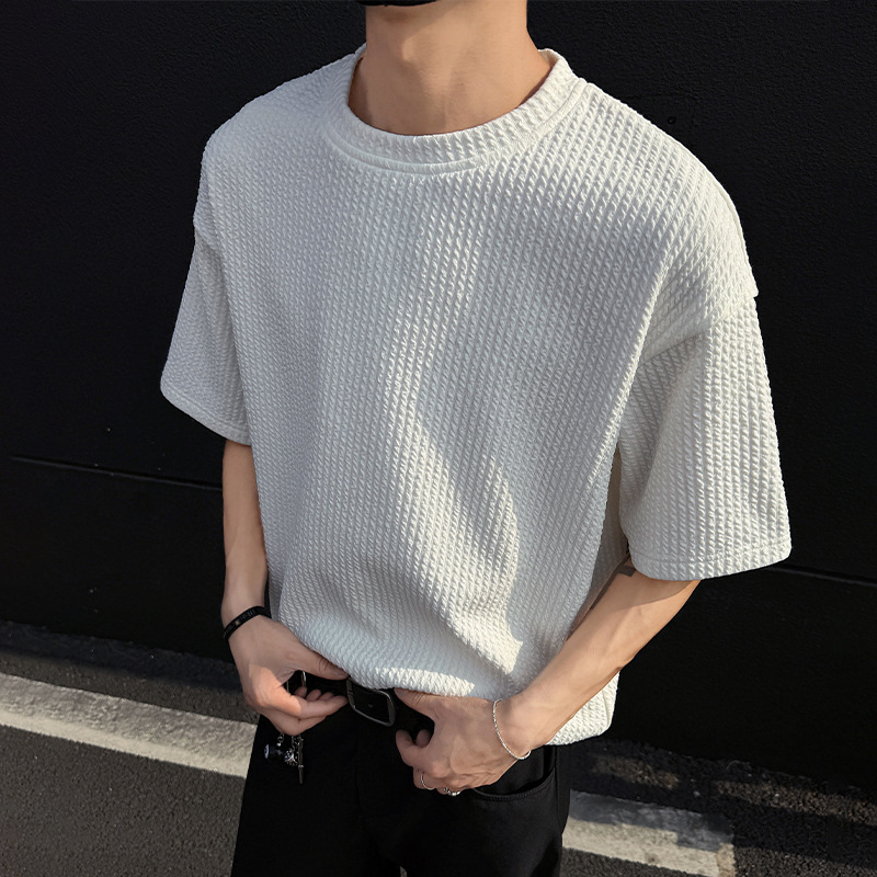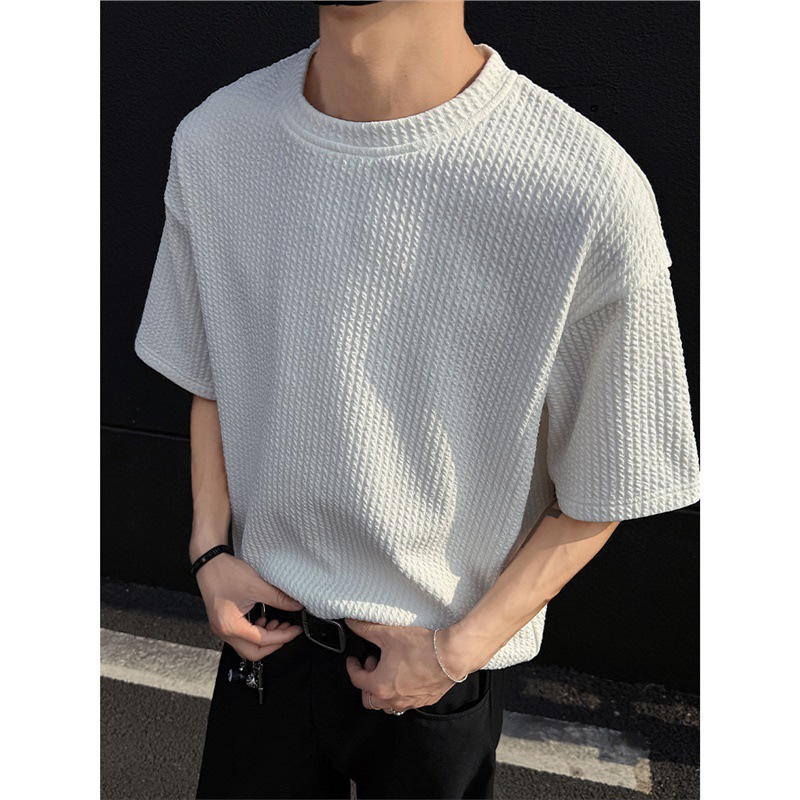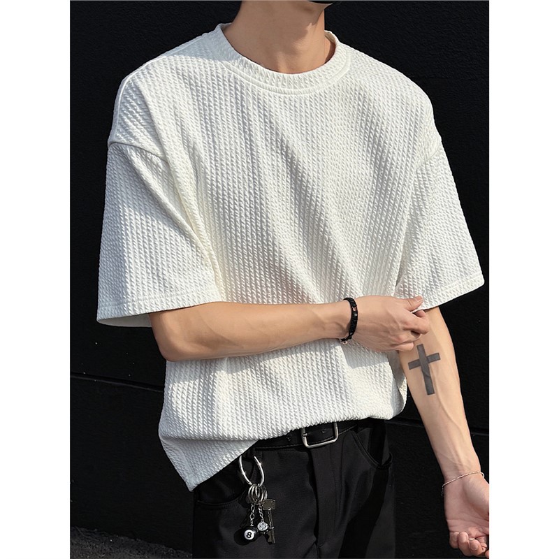 Главная страница > Белая текстурированная футболка с коротким рукавом для мужчин, лето 2025, новый американский стиль, модный бренд, высококачественная, стильная, универсальная полурукав.