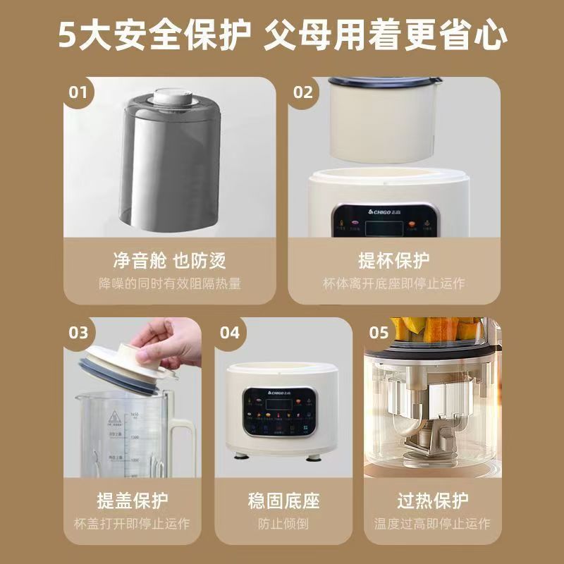 Блендер Chigo с бесшумной работой, фильтр не требуется, полностью автоматический, предварительный нагрев, дно с защитой от ожогов, соковыжималка, новая модель 2025 года, бытовой аппарат для приготовления соевого молока.