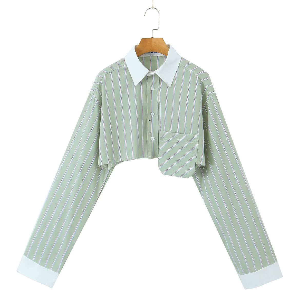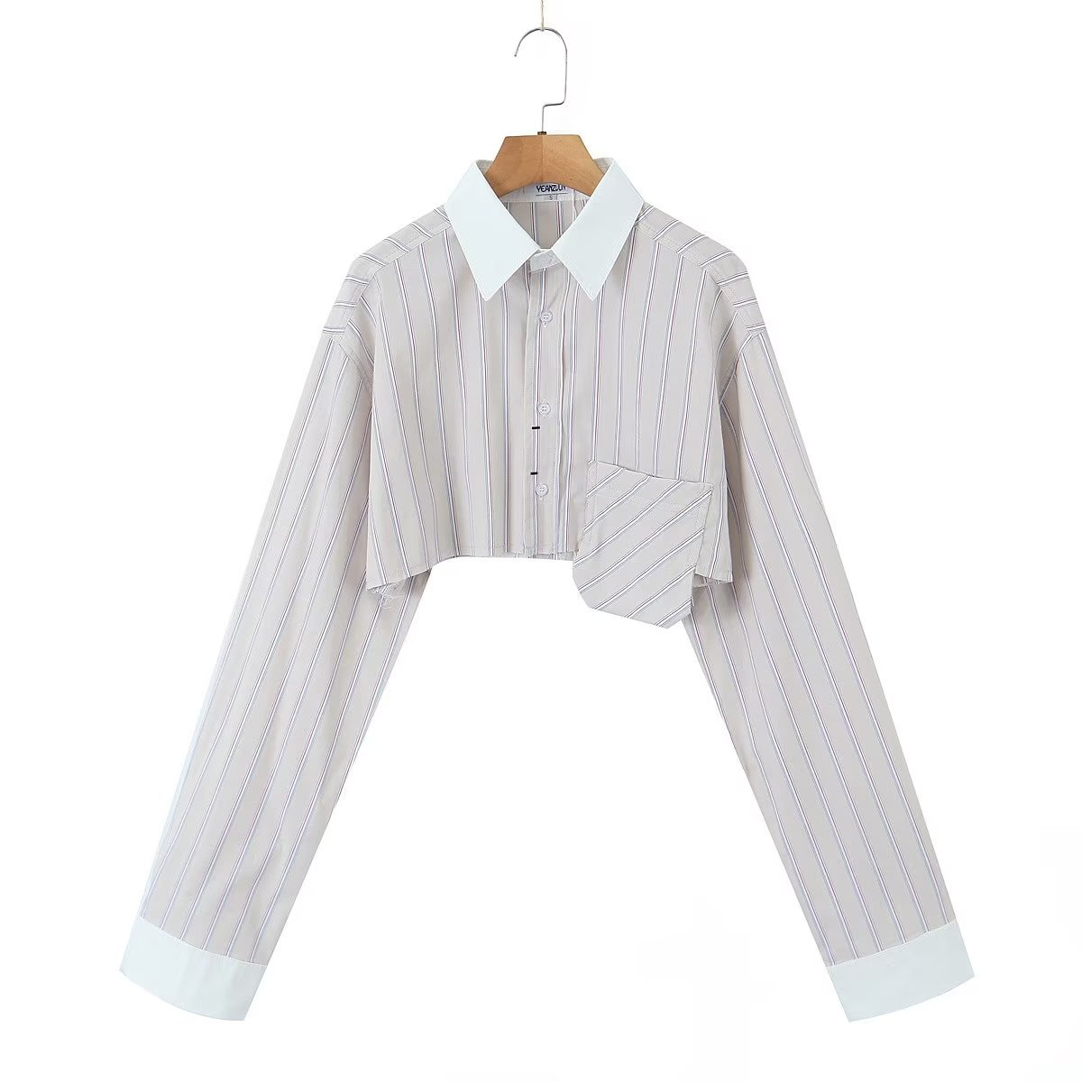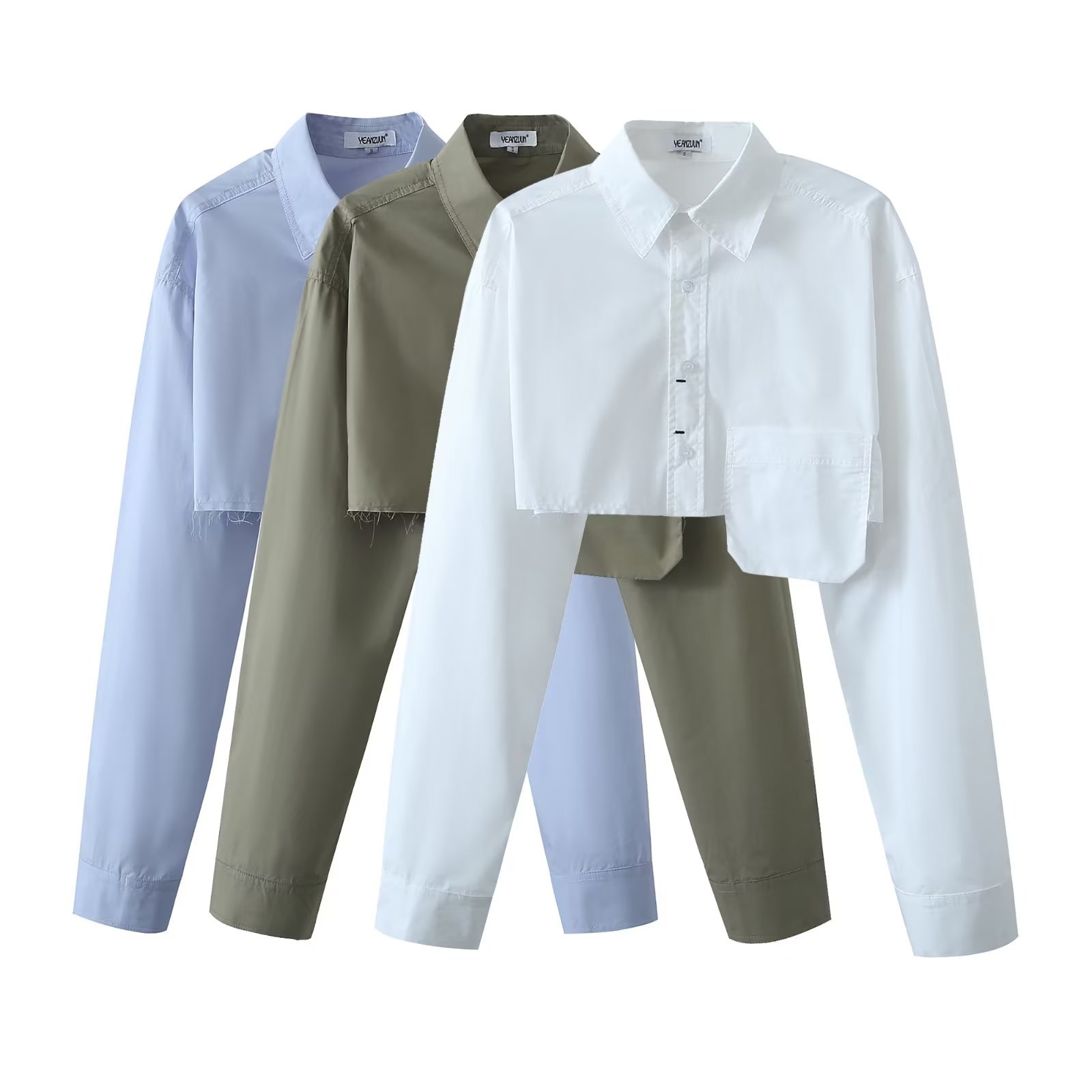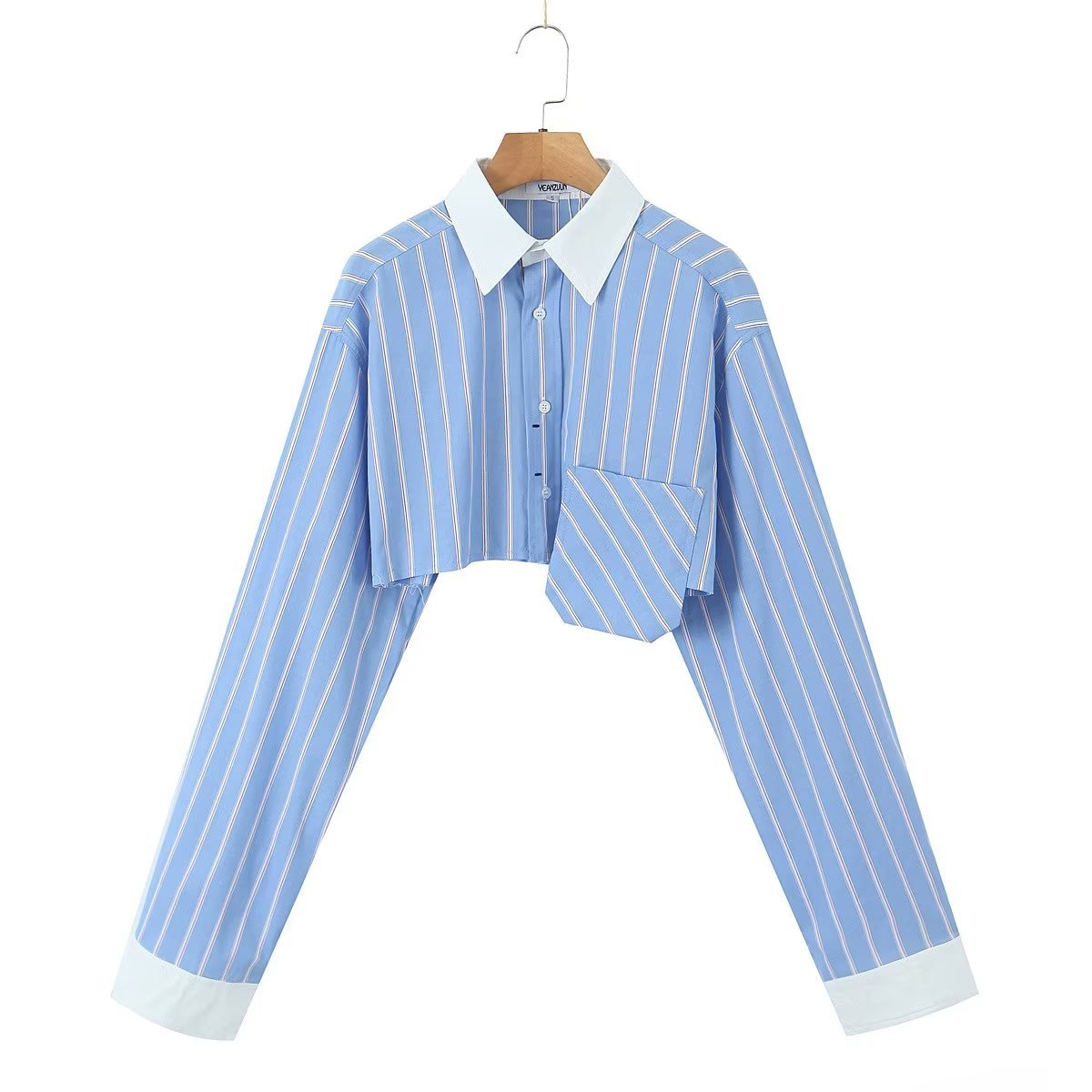 Главная страница > Летняя Новая Европейская и американская Женская одежда, модная однотонная горячая девушка, рваная Талия, рубашка с открытым карманом, топ C74338