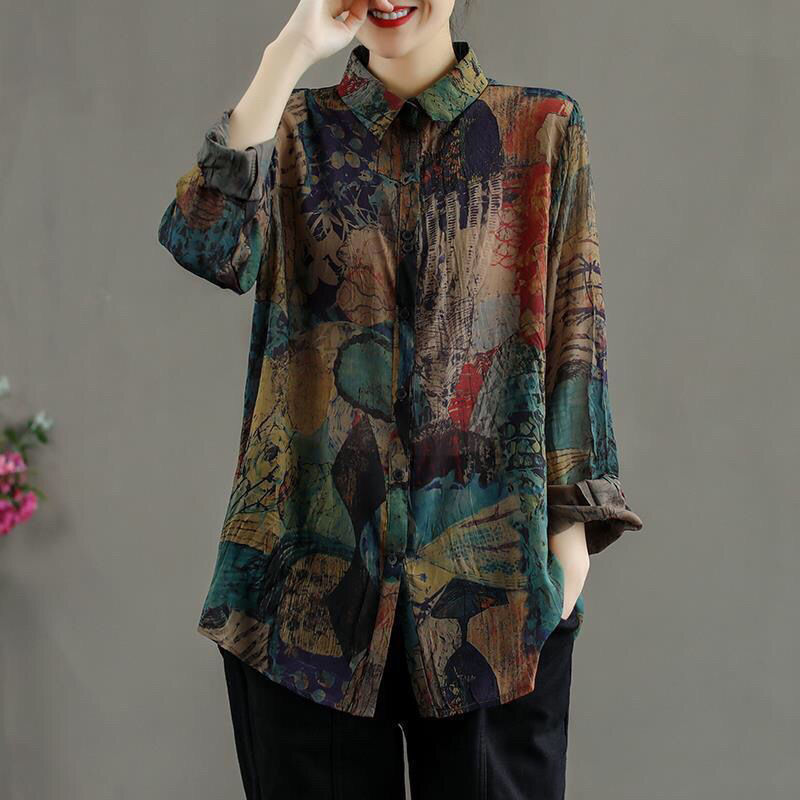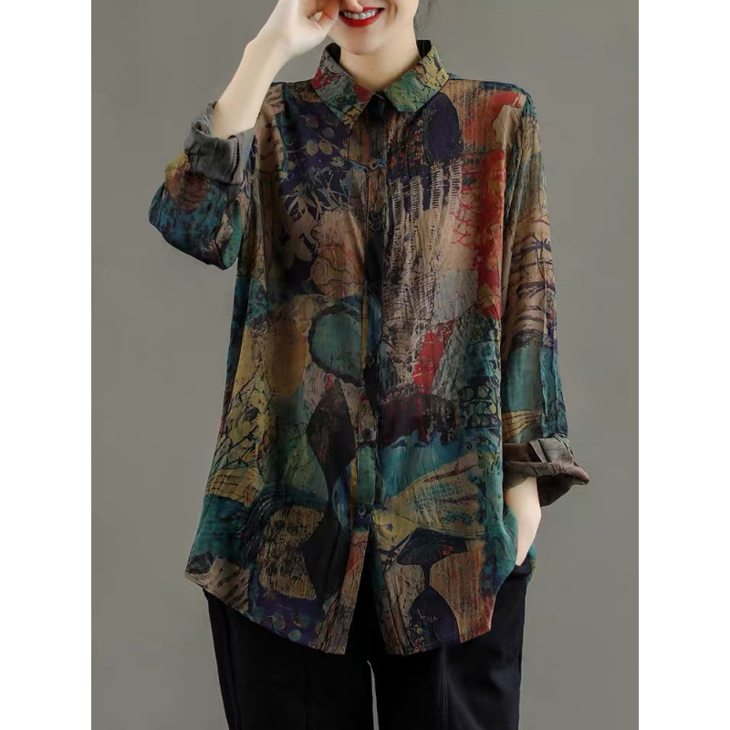 Главная страница > 2024 осень новая ретро свободная хлопчатобумажная рубашка с лацканом с длинным рукавом рубашка топ 8190 #