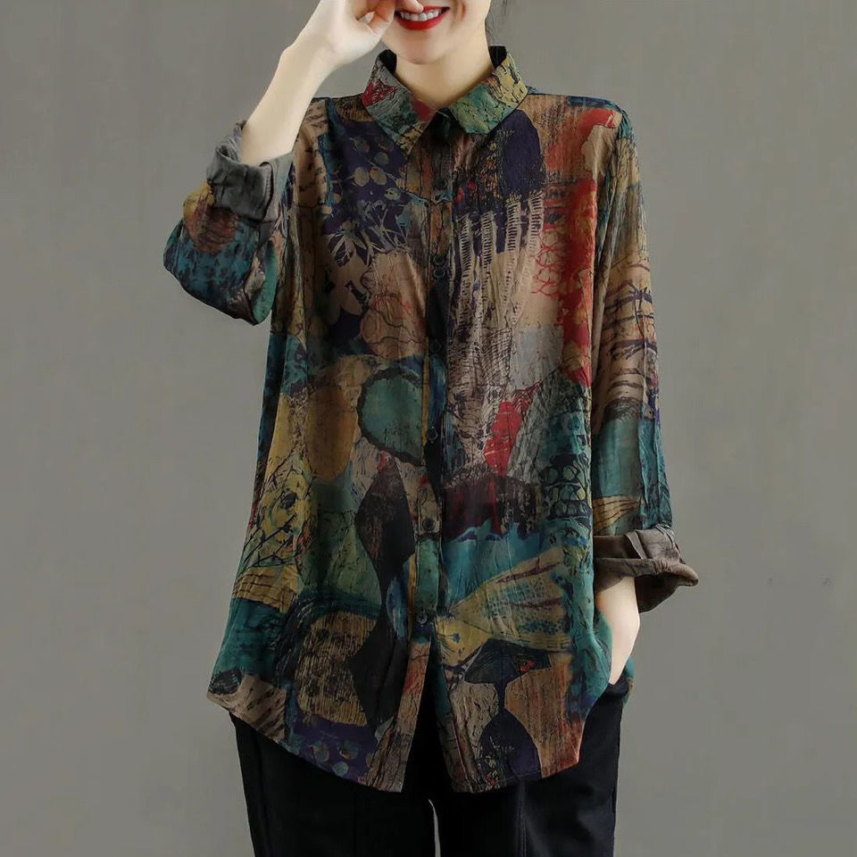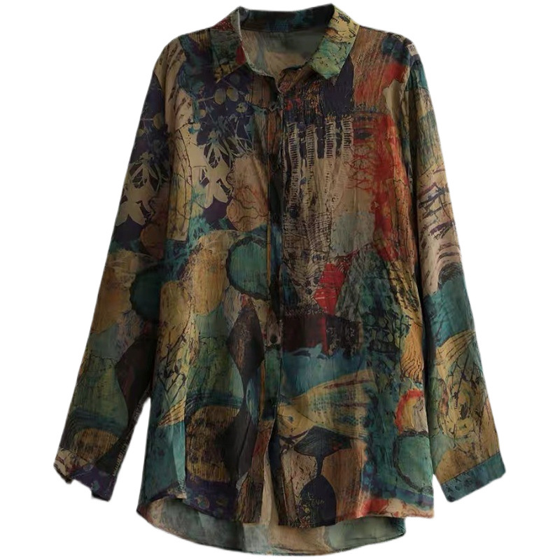 2024 осень новая ретро свободная хлопчатобумажная рубашка с лацканом с длинным рукавом рубашка топ 8190 #