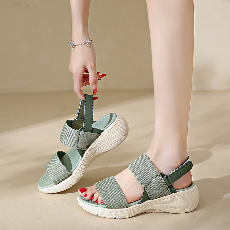 Главная страница > 2025 новые летние пляжные туфли с мягкой подошвой большого размера, простой стиль, женские туфли на липучке, спортивные сандалии на толстой подошве для женщин