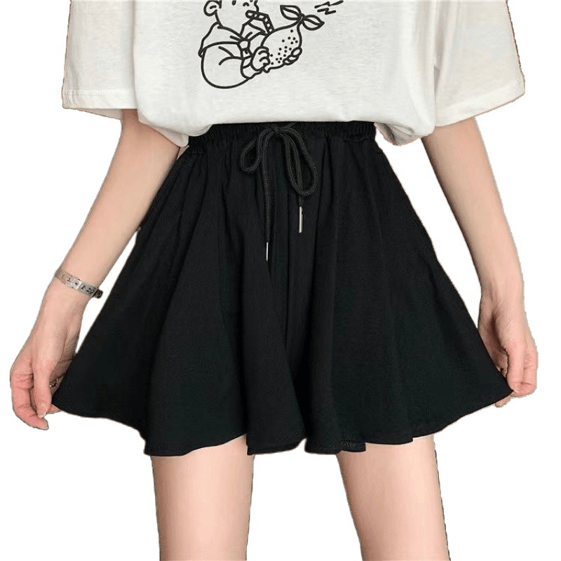 Главная страница > Черные брюки три четверти из ледяного шелка, юбка, ультра-короткие брюки, женские свободные модные летние шорты, новинка 2025 года, тонкая верхняя одежда