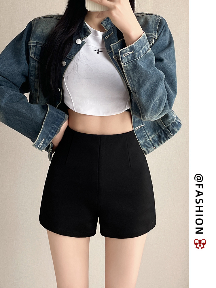 Черные женские шорты-леггинсы 2025: новинка весны и осени, укороченные, с высокой талией, стройнящие, для стройных девушек, модные шорты-леггинсы для осени