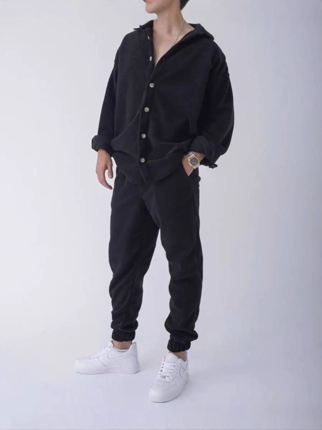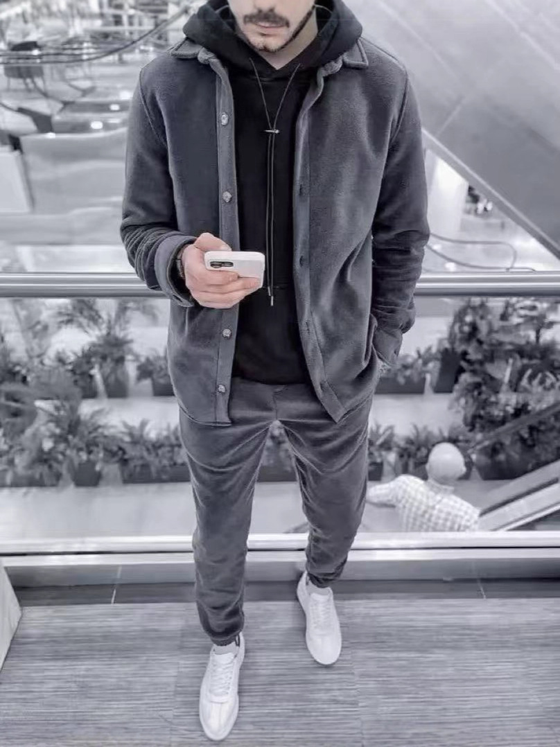 Главная страница > Зимний мужской костюм из замши с длинным рукавом и пуговицами 2025, модная повседневная рубашка, идеальный комплект для любого образа
