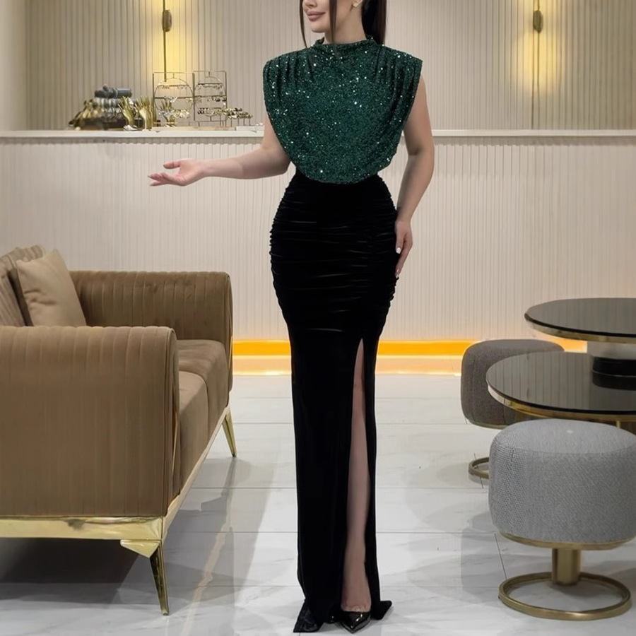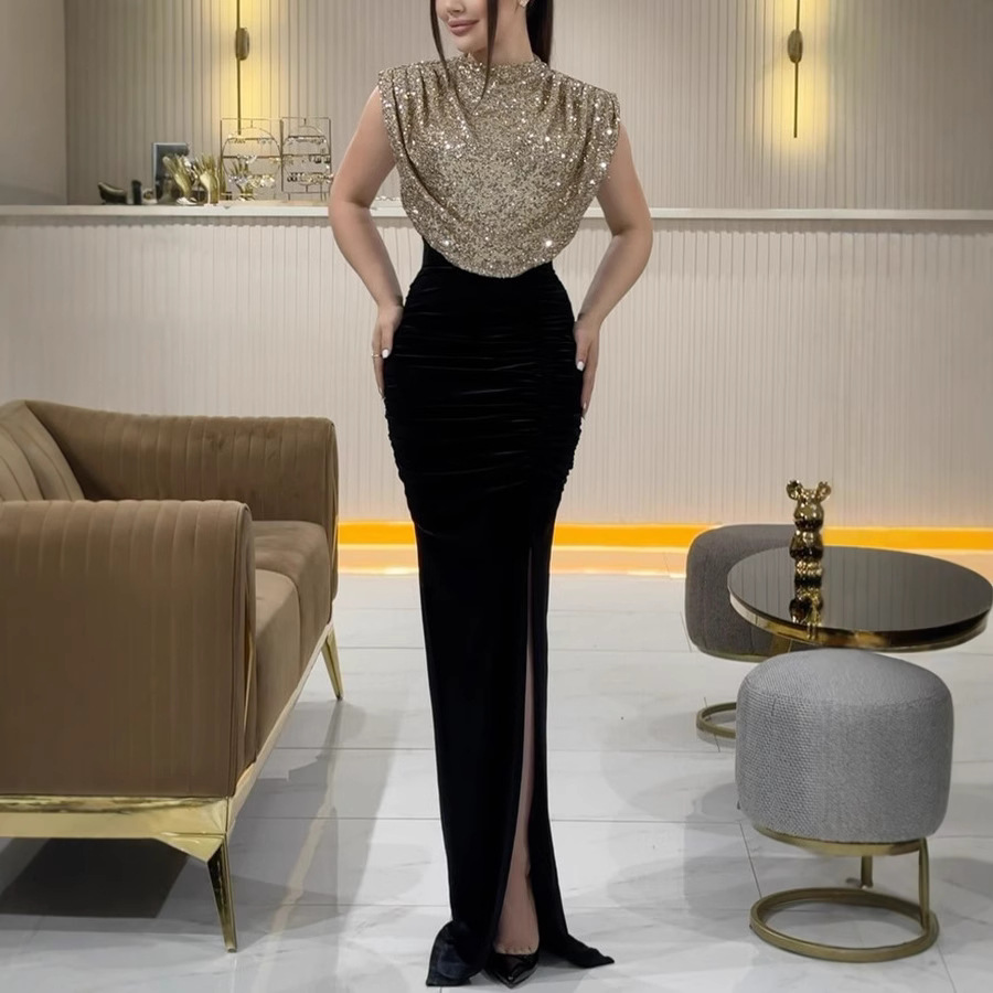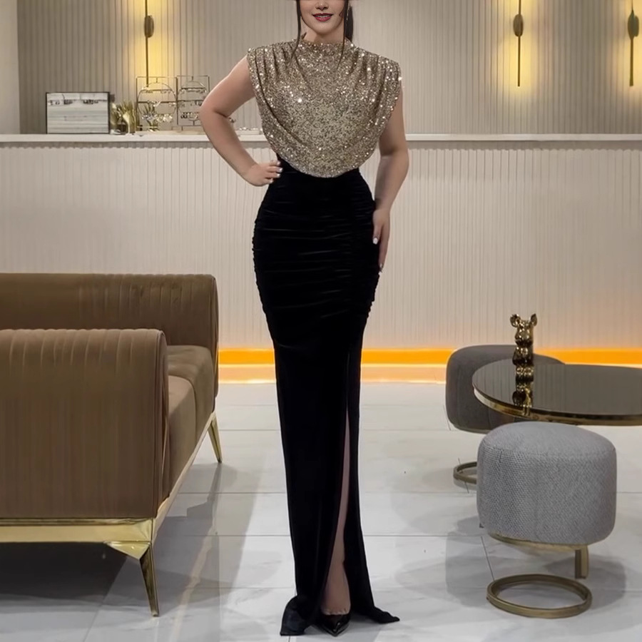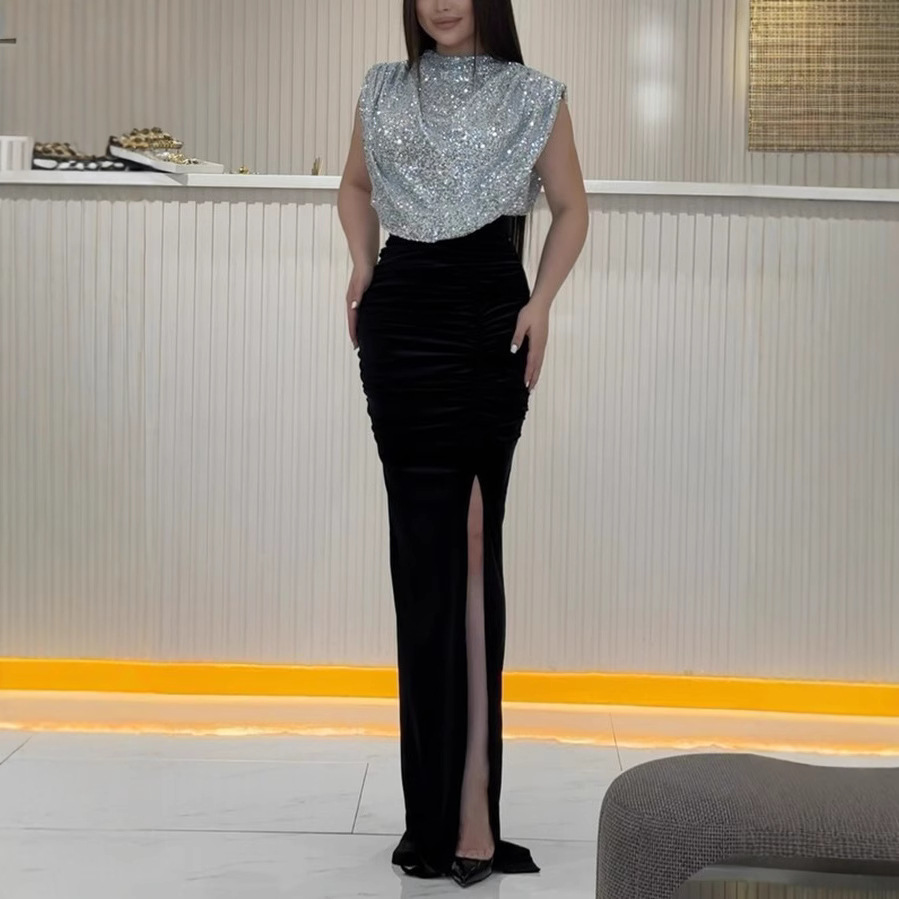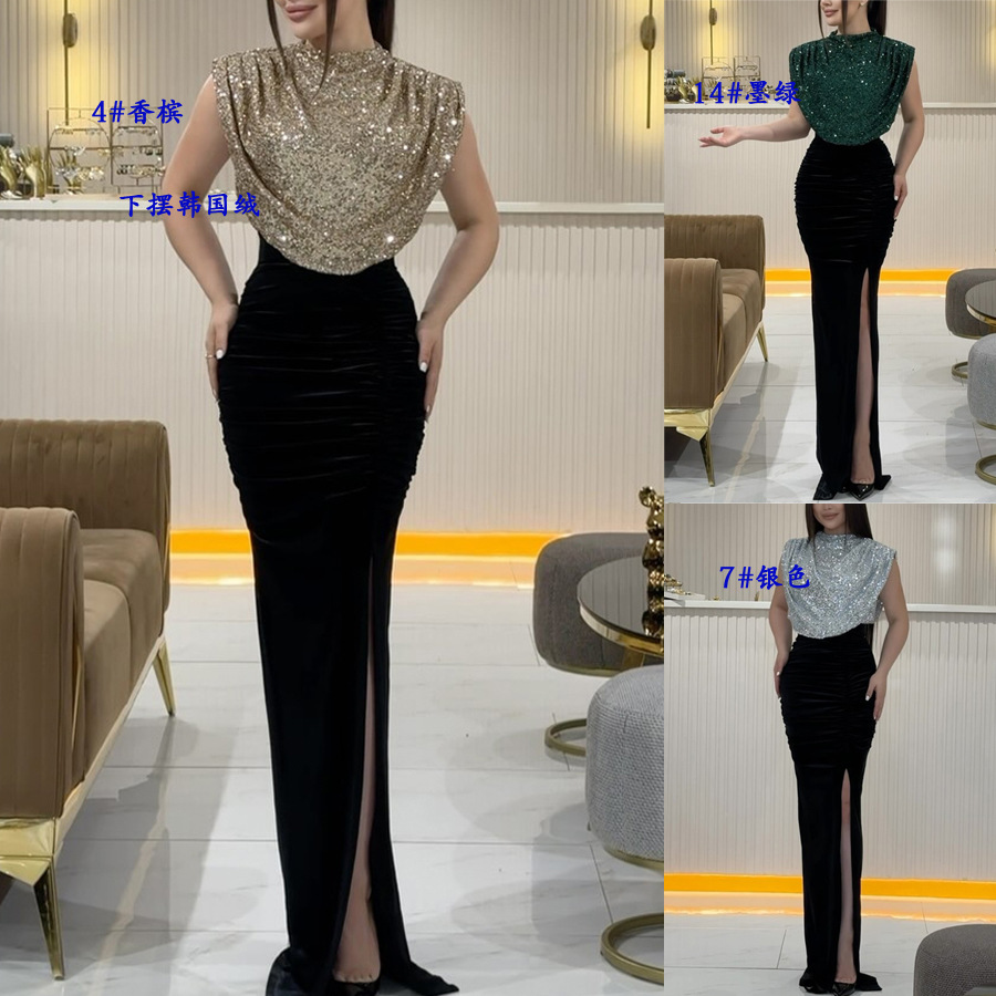 2025 Европейская и Американская внешняя торговля Весна и Осень Новые блестки Сшитое платье INS Повседневное платье без рукавов