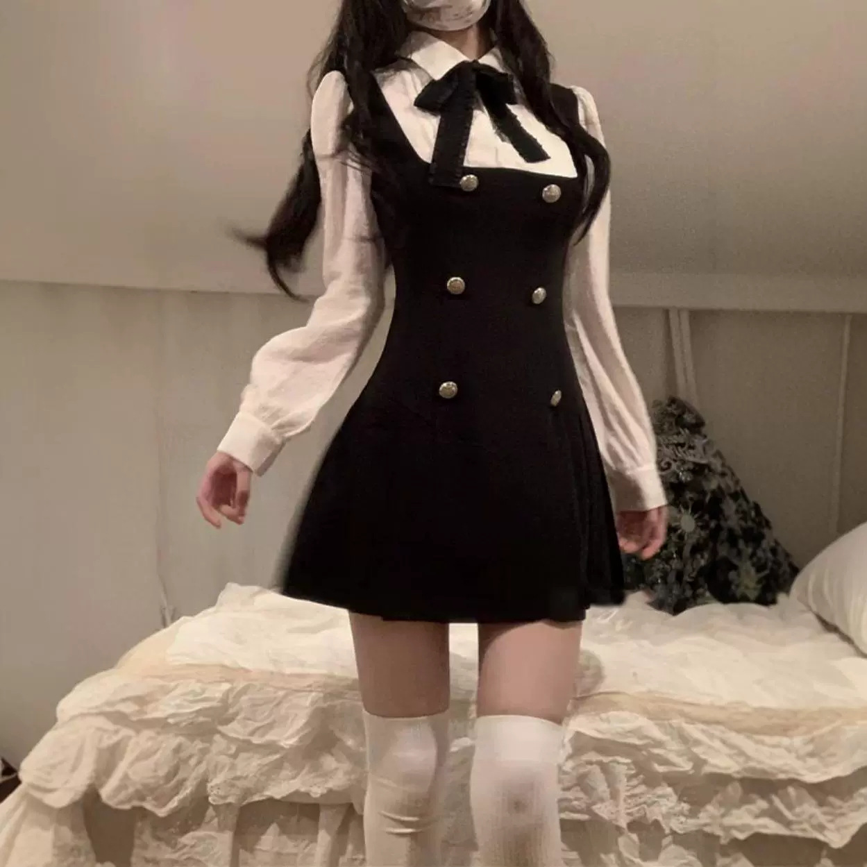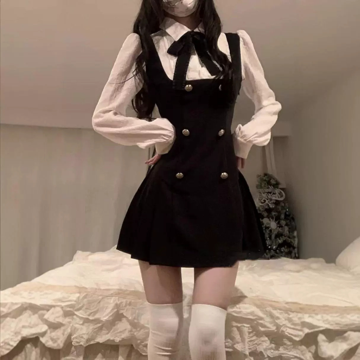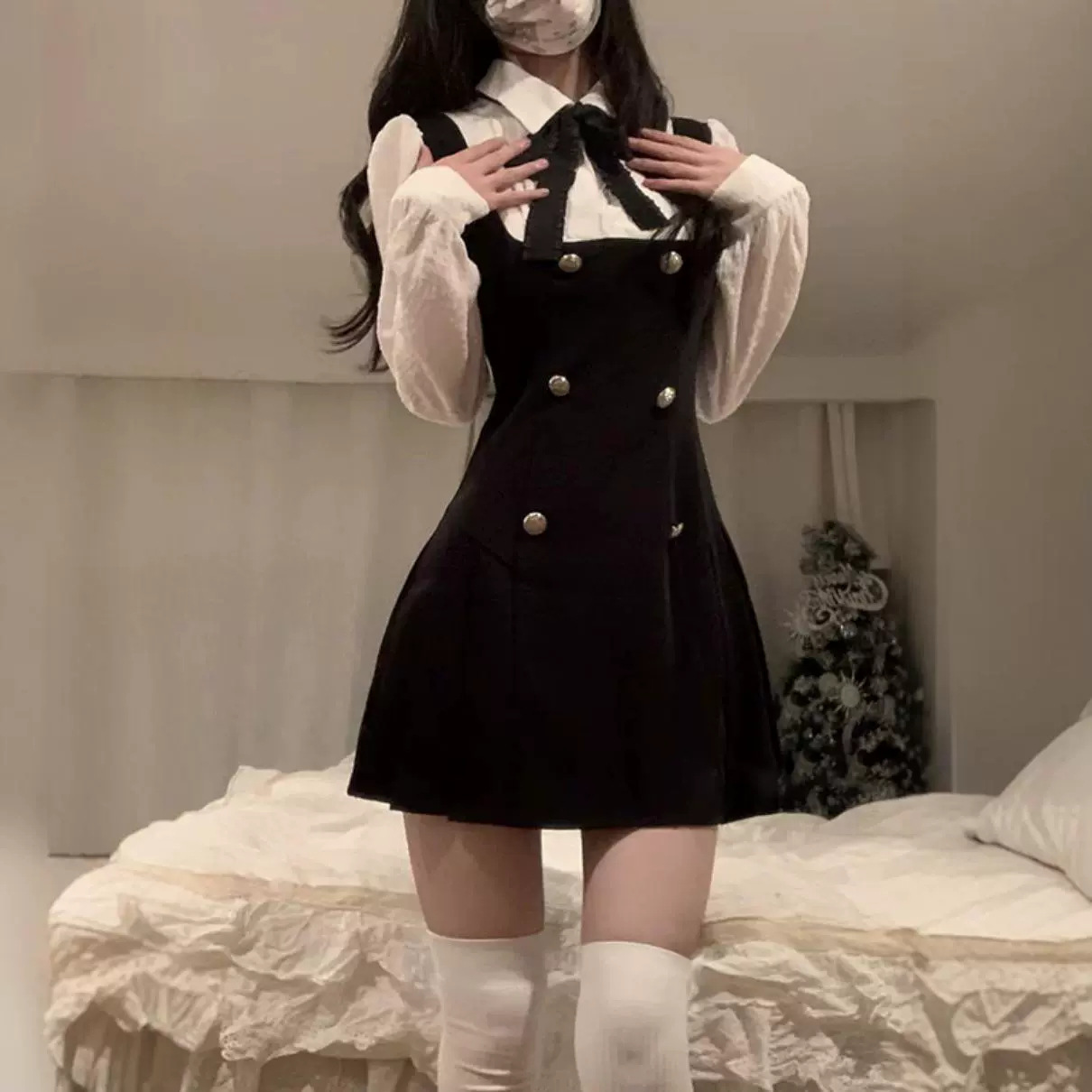 Главная страница > Ранняя осень Французский академический стиль поддельный набор из двух частей Черная горячая девушка платье с ремешком для детей ранней осенью 2024 новый стиль