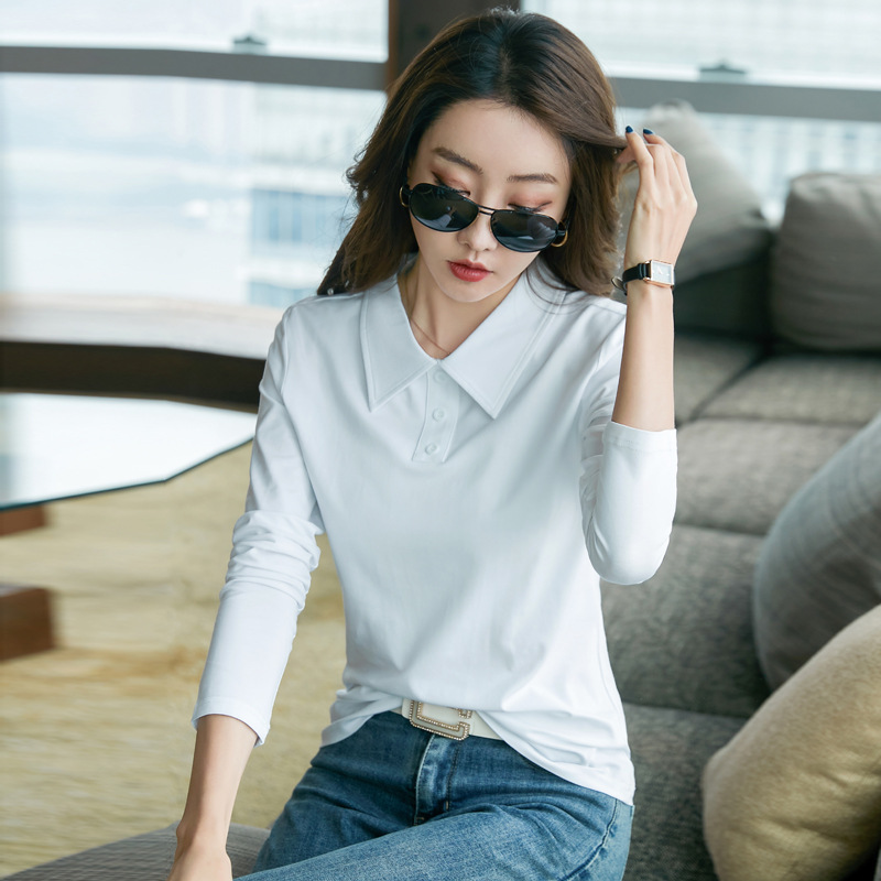 Главная страница > Yuwei 2505 # Real Shot 2022, новая весенняя рубашка из мерсеризованного хлопка с длинными рукавами, элегантная приталенная Женская футболка для похудения
