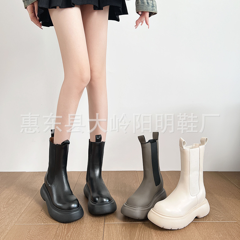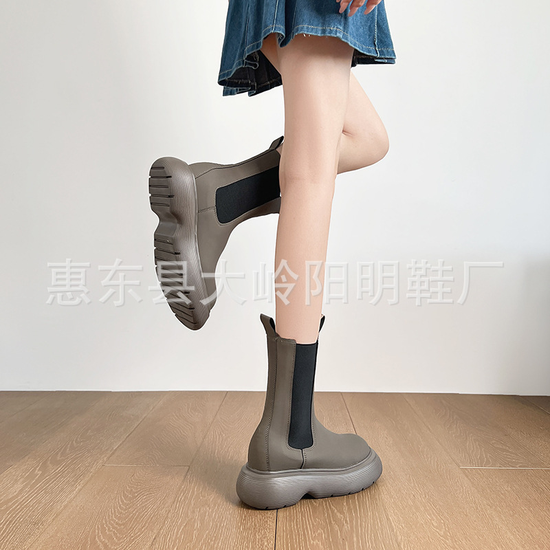 Главная страница > Ботинки челси на толстой подошве из натуральной кожи в корейском стиле, увеличивающие рост, для стройности, от интернет-знаменитости Моны