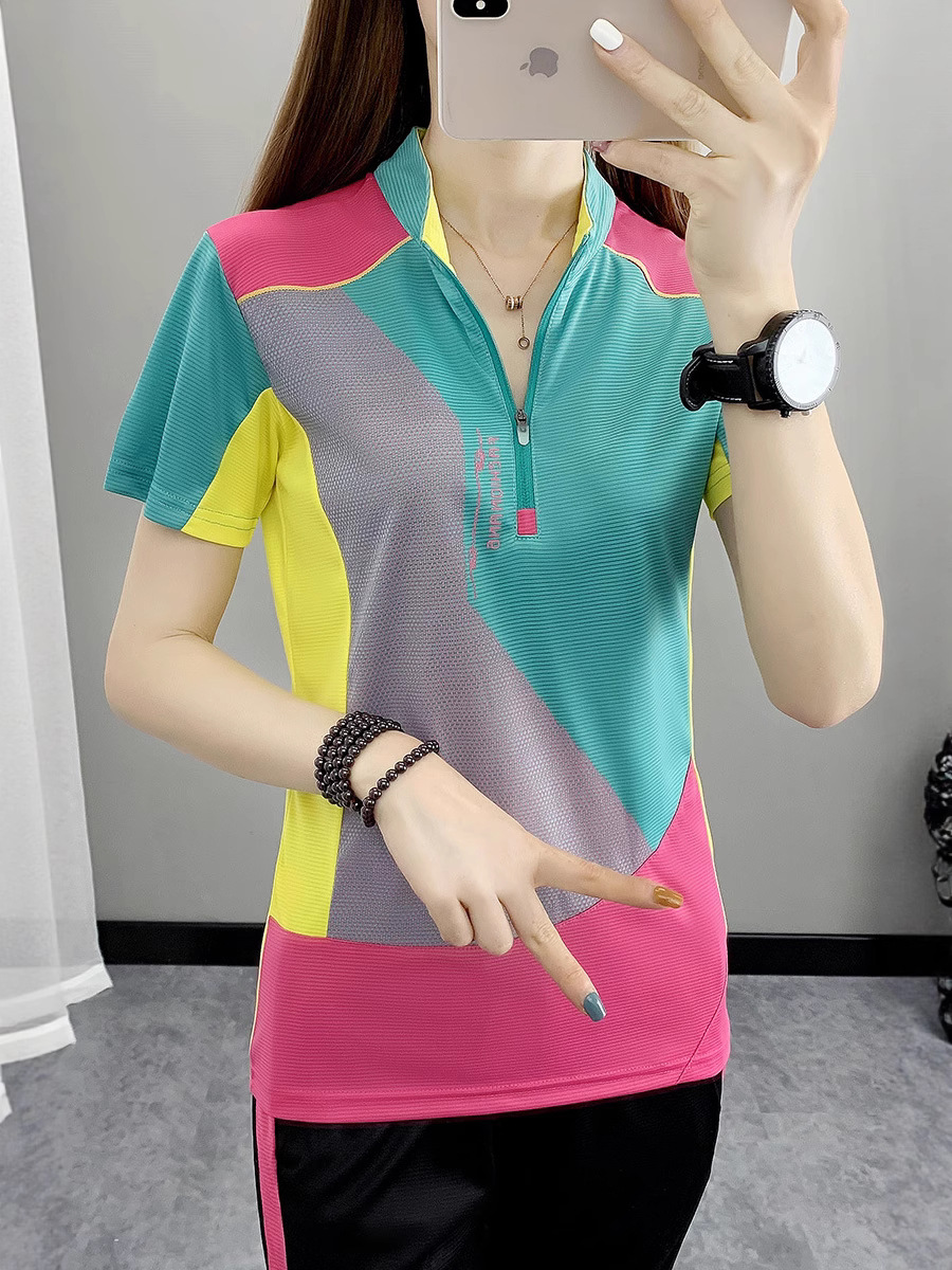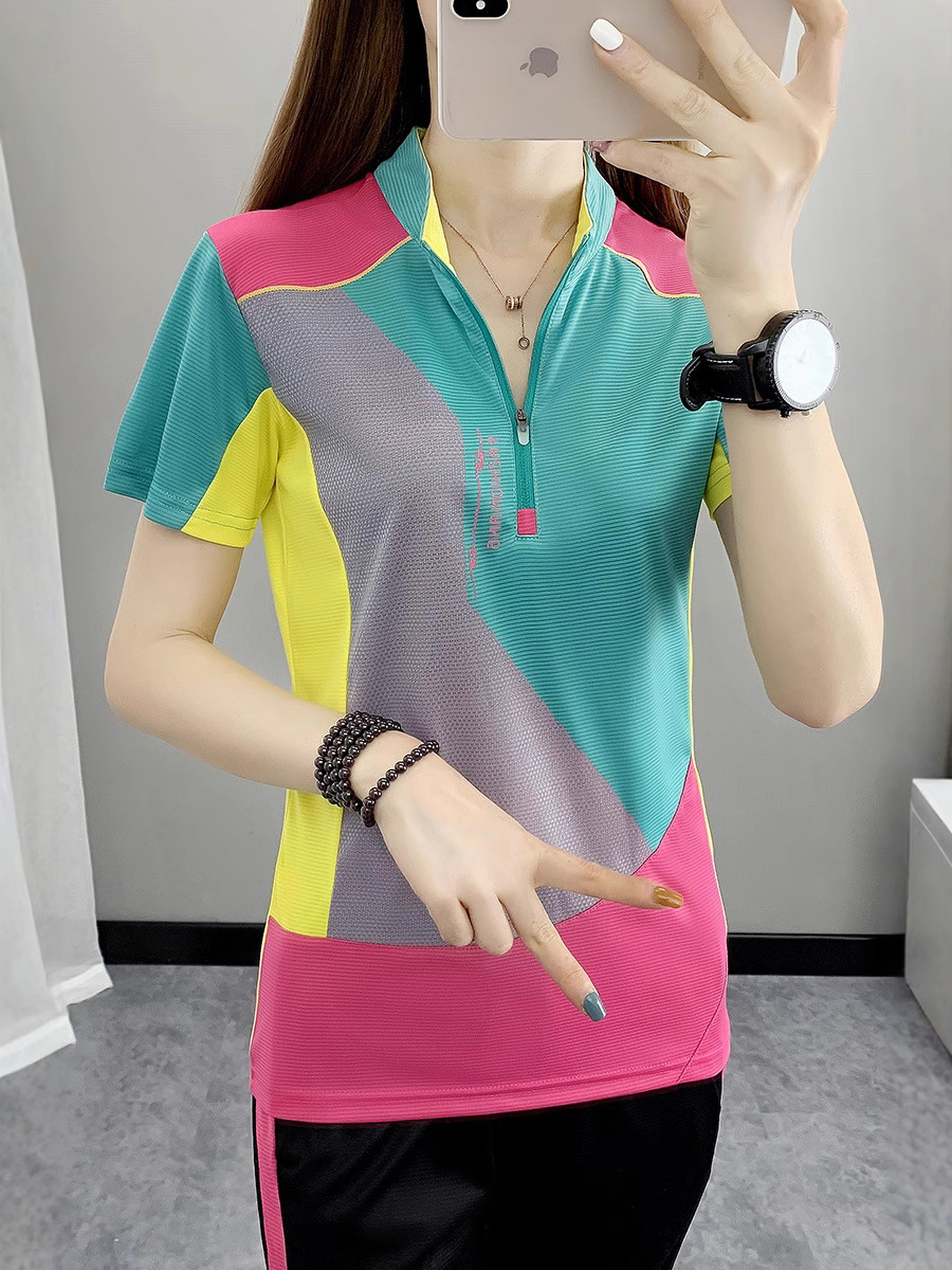 Главная страница > Женская быстросохнущая уличная одежда с цветными блоками, женская весенне-летняя тонкая эластичная дышащая футболка для бега, спорта, альпинизма, с короткими рукавами