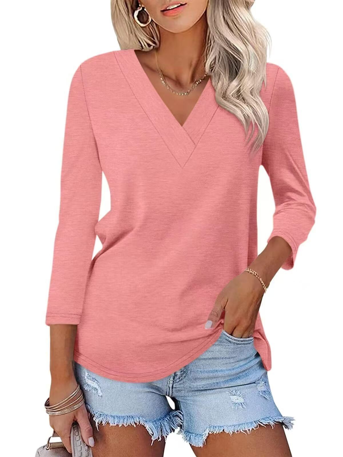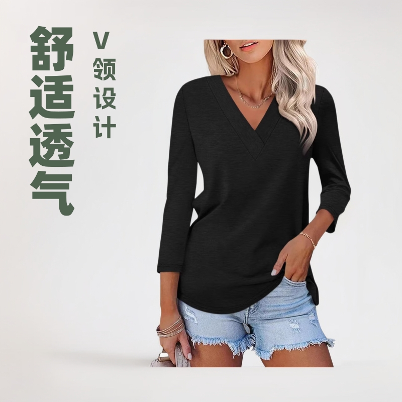 Главная страница > 2025 трансграничная экспортная женская одежда, осенне-зимняя новая футболка с v-образным вырезом и длинными рукавами, женская модная брендовая свободная повседневная универсальная модная повседневная одежда