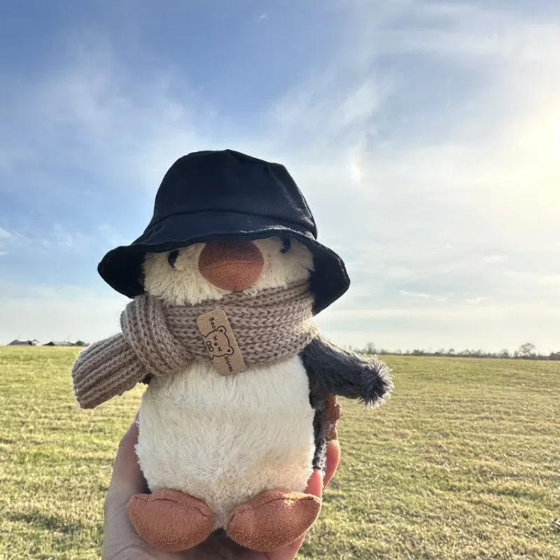 Пингвин в черной шапке и шарфе