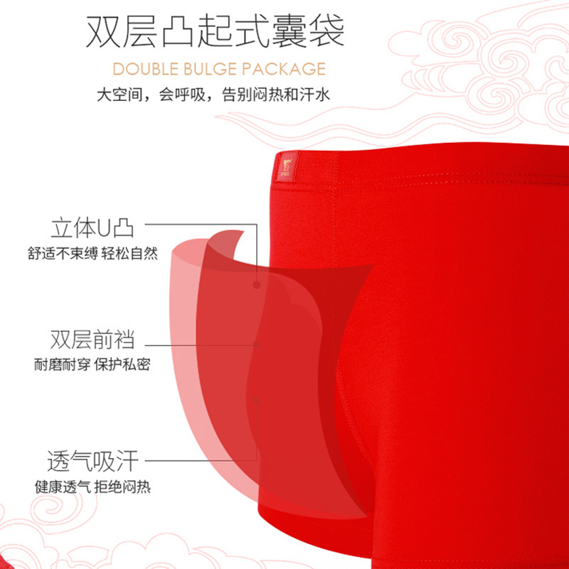 Семь волков Hongyun бамбуковое волокно мужские четыре угла года свадебные принадлежности красный средняя талия мужчина