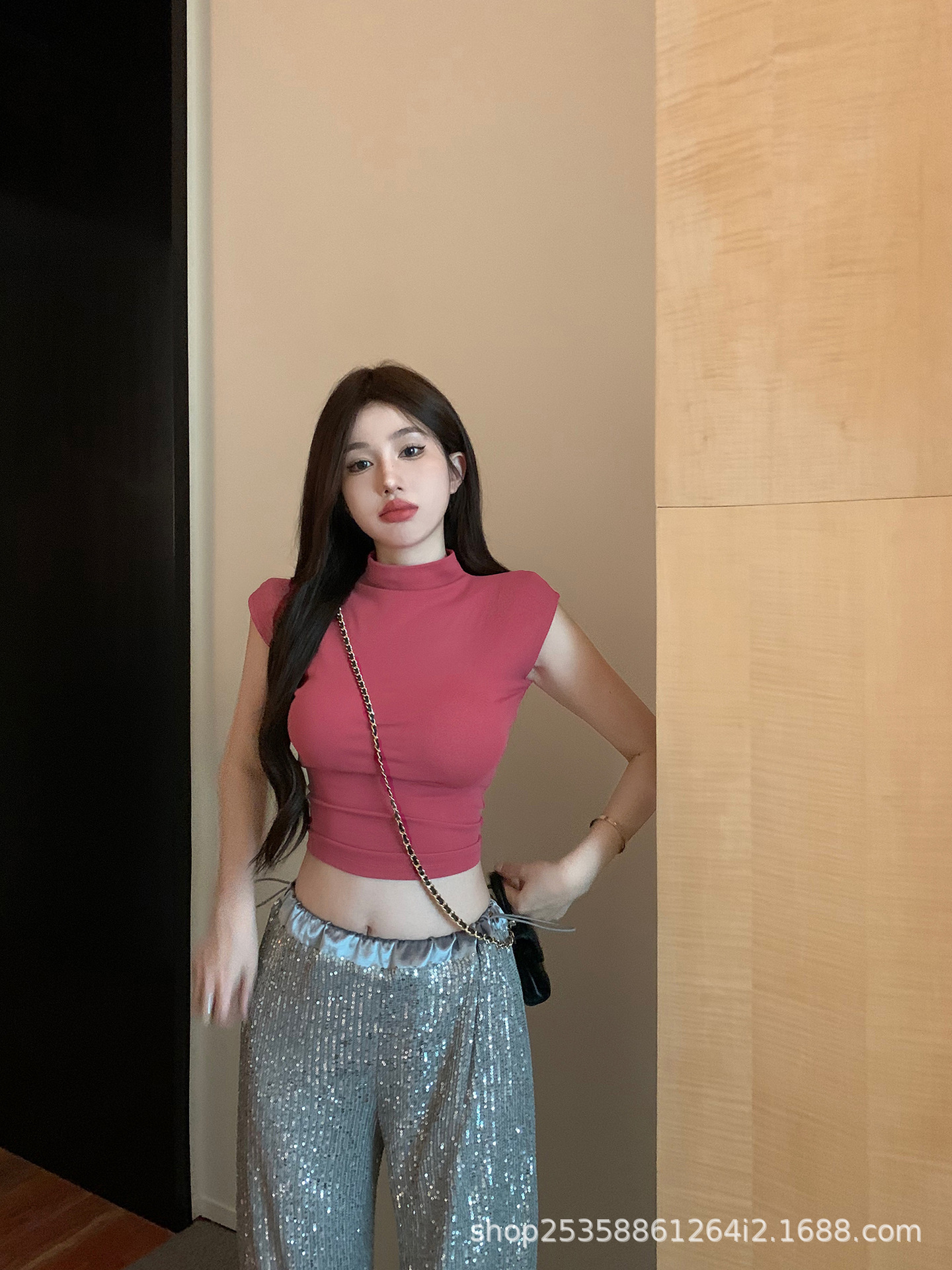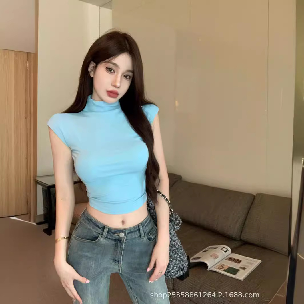 Главная страница > Горячая девушка с пупком топ женская короткая рубашка с короткими рукавами летом тонкая и сплошной цвет