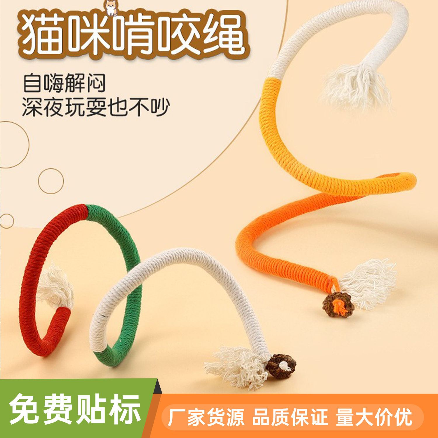 Кошка кусает веревку
