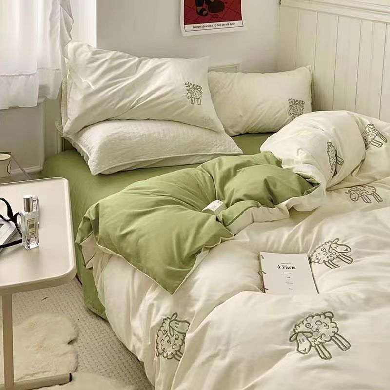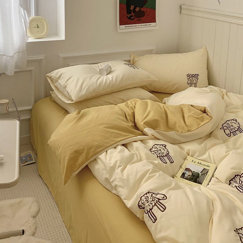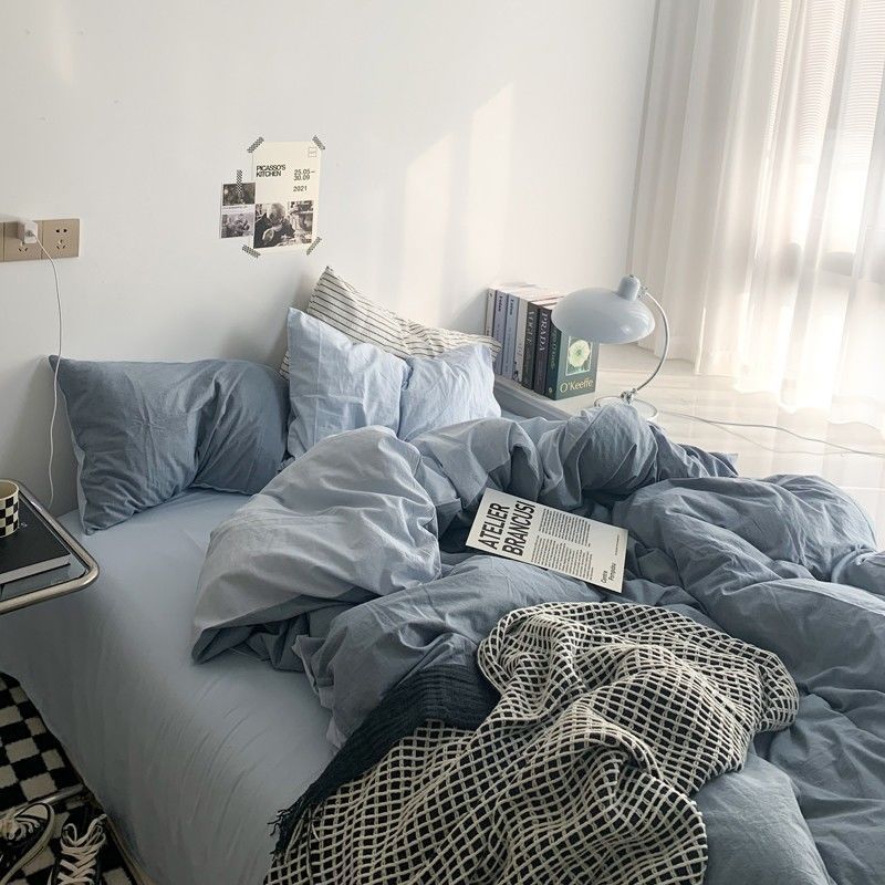 Главная страница > Простой и красивый двойной контрастный цветной пододеяльник в скандинавском стиле, комплект постельного белья из четырех предметов, простыни, комплект из трех предметов для общежития