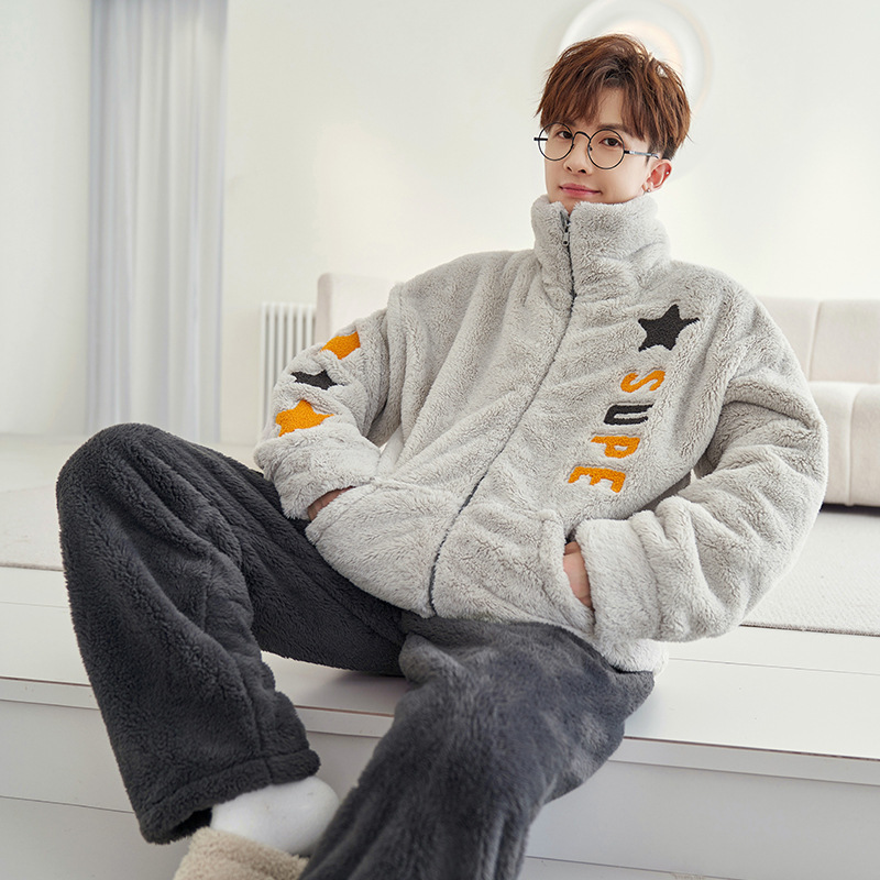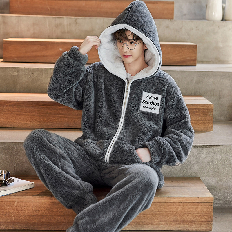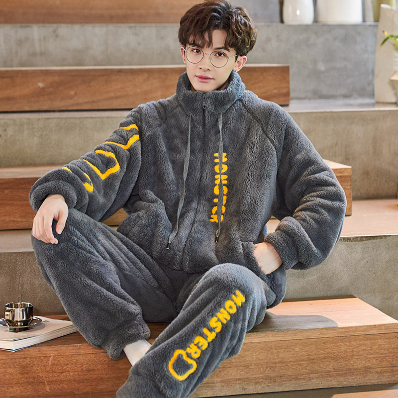 Главная страница > Пижамы мужские осенние и зимние коралловые бархатные толстые мужские теплые подростки большой размер зимняя домашняя одежда набор