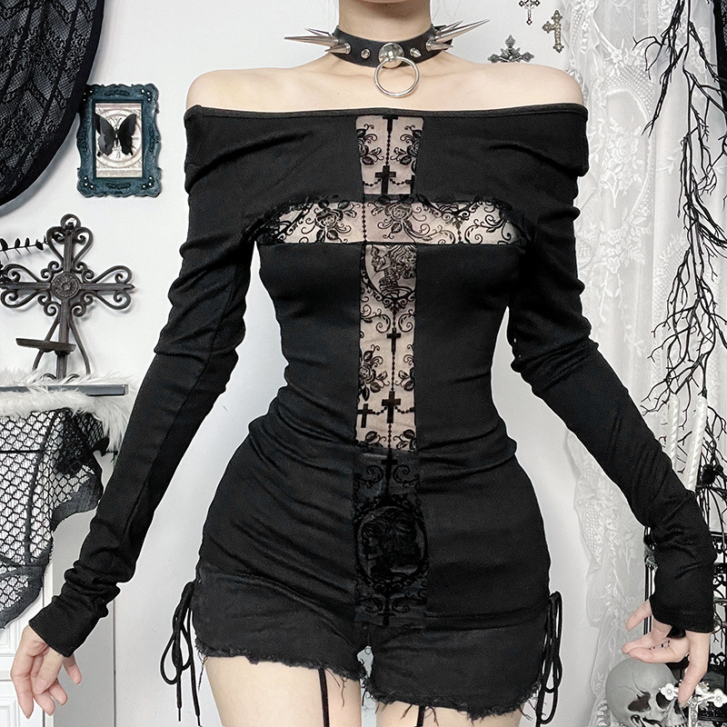Главная страница > XS24280 уличный ветер с длинными рукавами крест сшивания топ женский Хэллоуин сексуальная горячая девушка дикая футболка