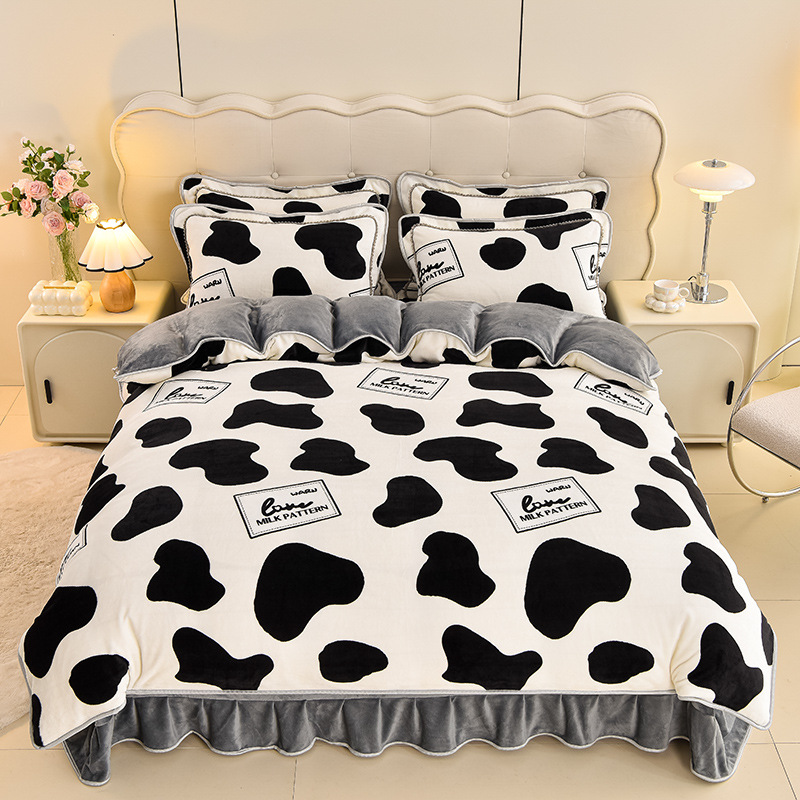 Теплый и утолщенный комплект постельного белья из молочного вельвета из четырех предметов, комплект из трех предметов на флисовой подкладке, фланелевая простыня и пододеяльник оптом