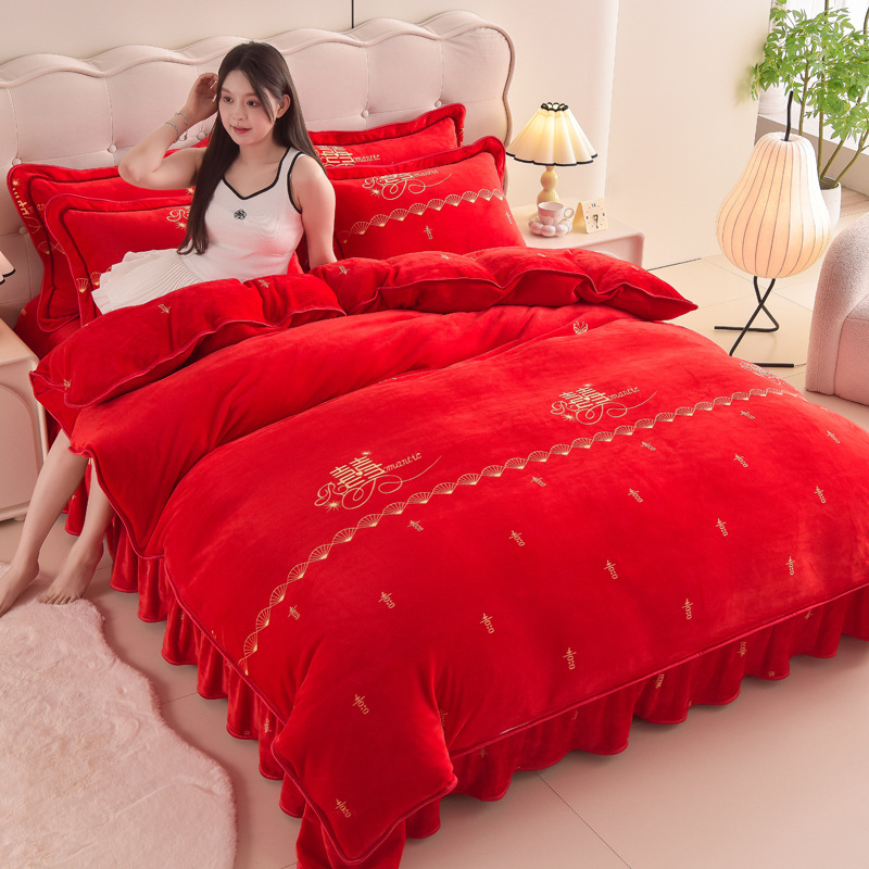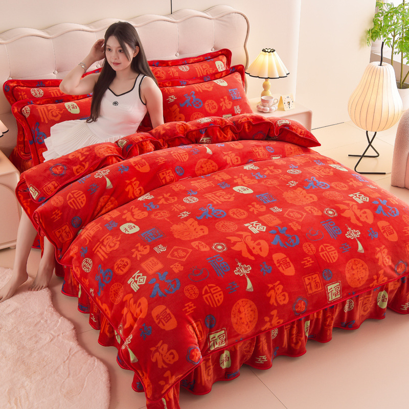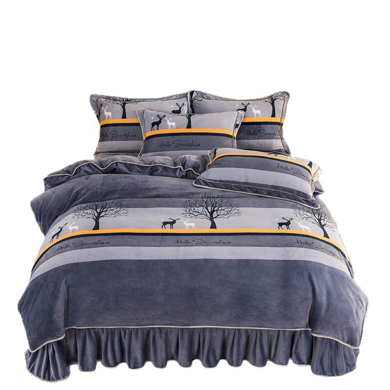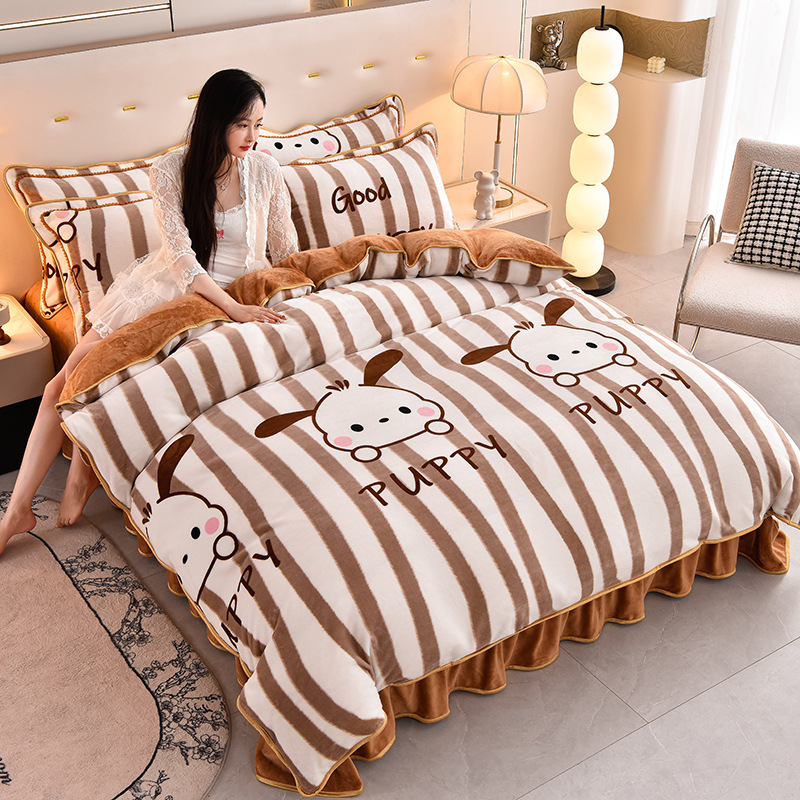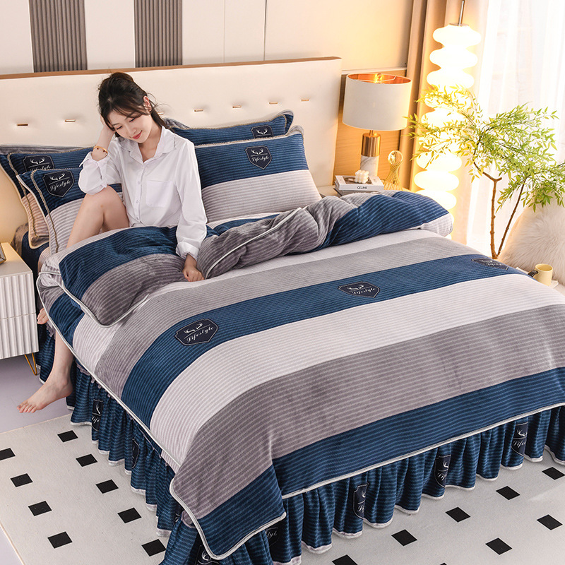 Главная страница > Теплый и утолщенный комплект постельного белья из молочного вельвета из четырех предметов, комплект из трех предметов на флисовой подкладке, фланелевая простыня и пододеяльник оптом