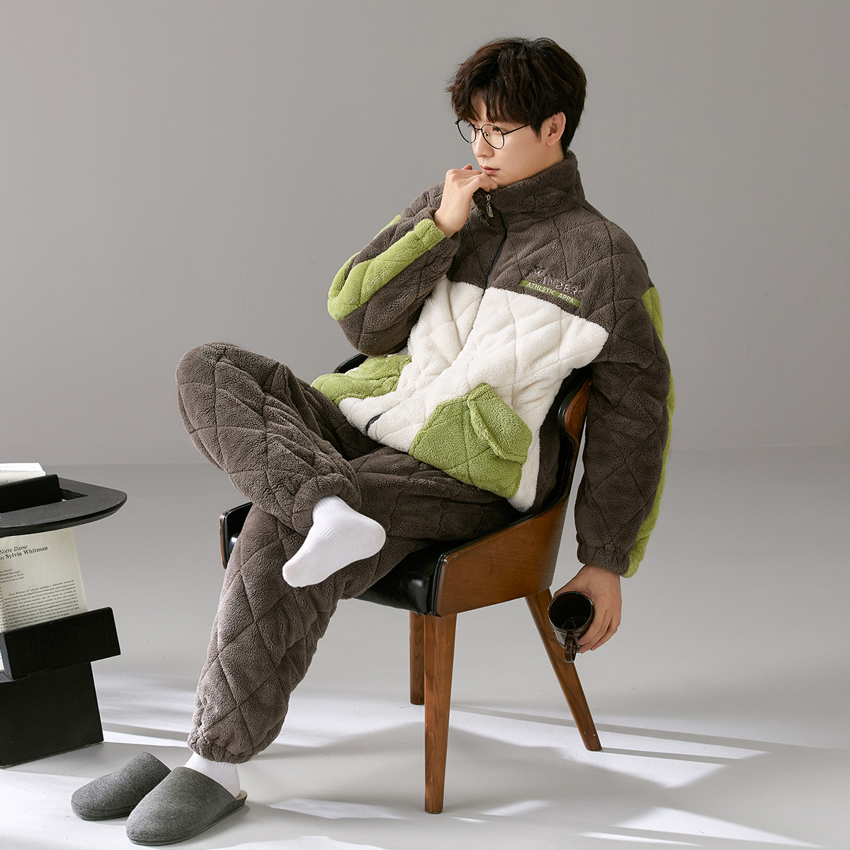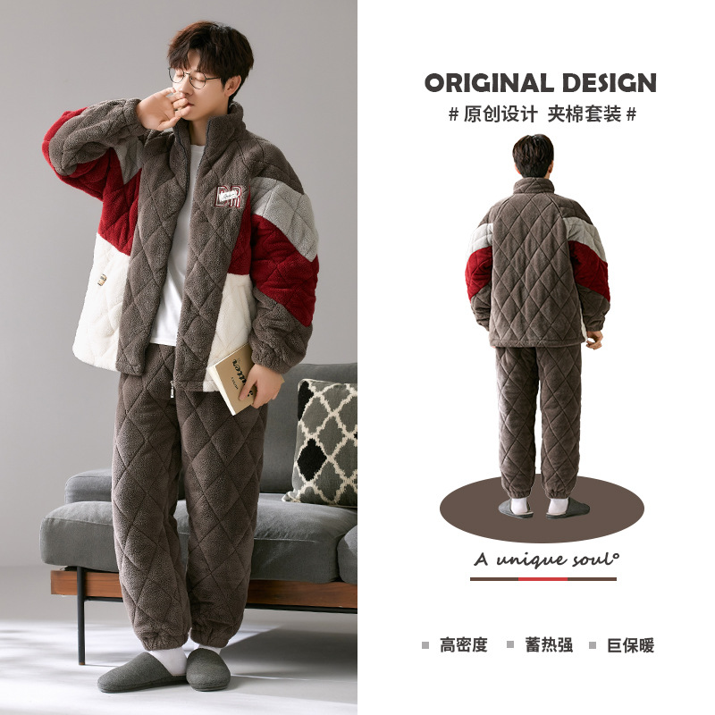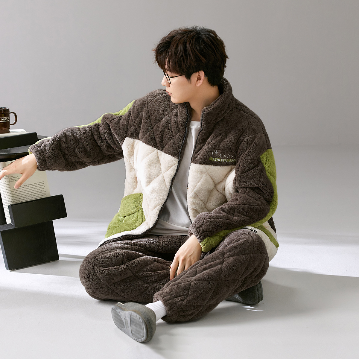 Главная страница > Runma [теплый тип] зимняя мужская пижама трехслойная стеганая утолщенная Коралловая флисовая одежда верхняя одежда домашняя одежда для мужчин