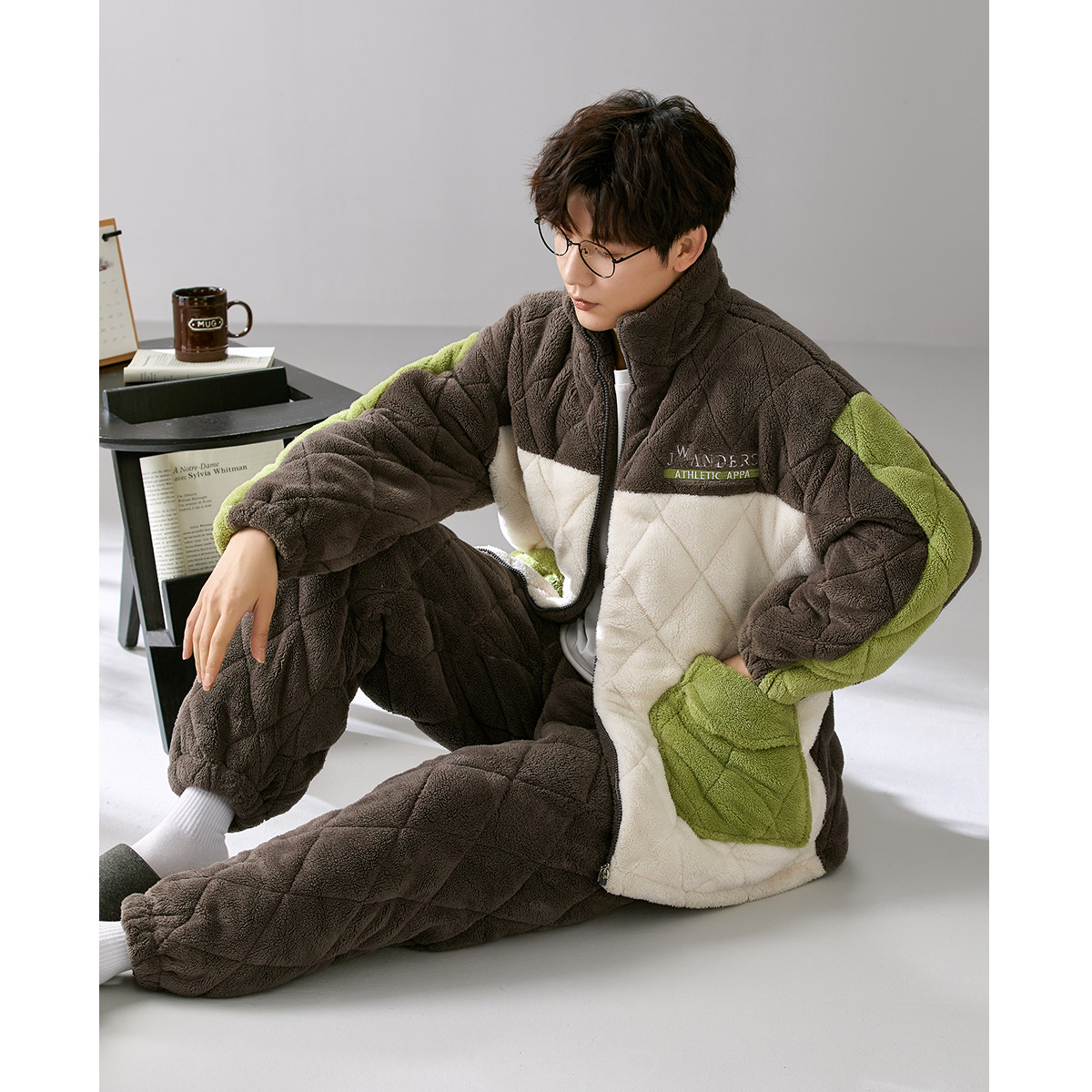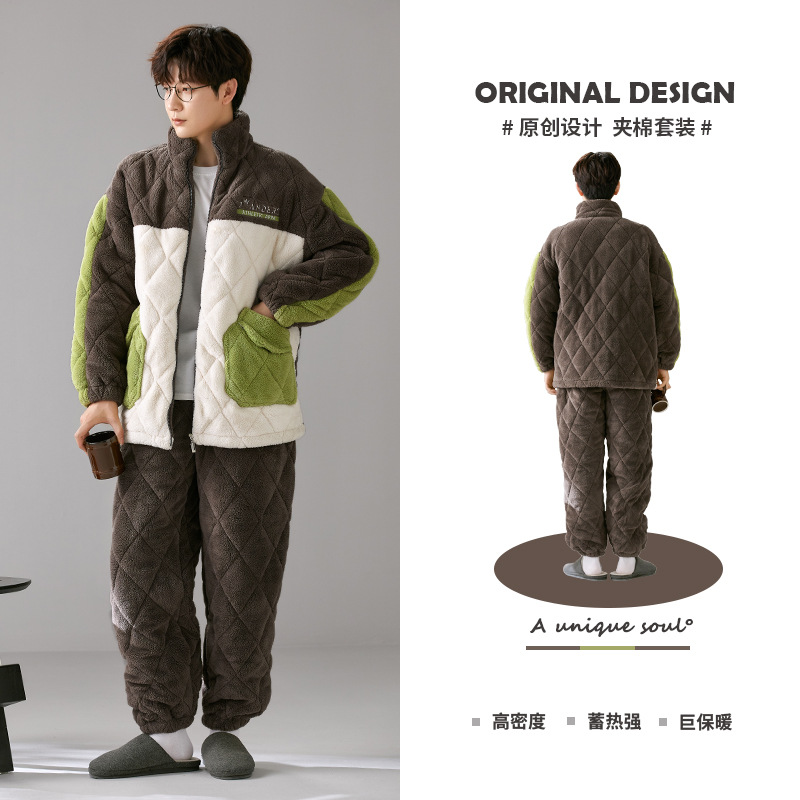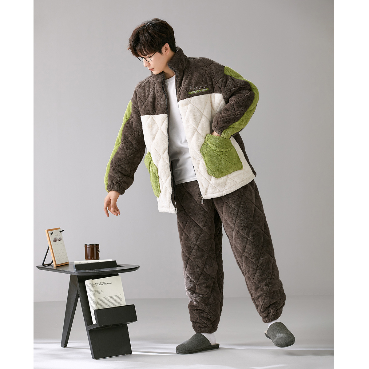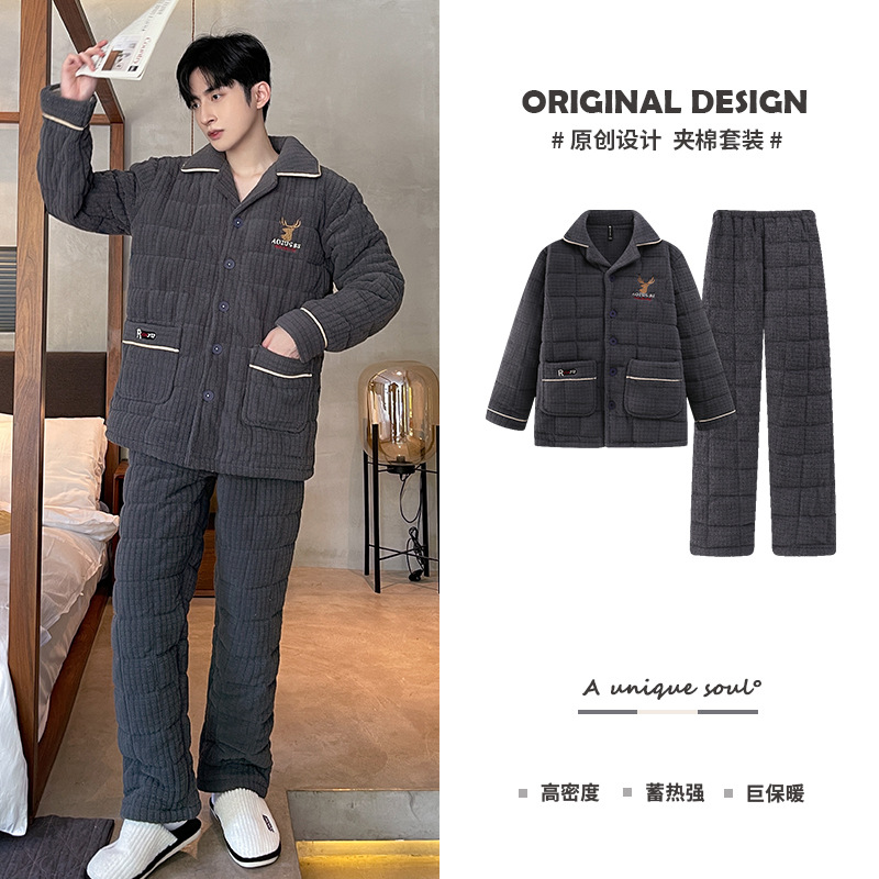 Главная страница > Runma [теплый тип] зимняя мужская пижама трехслойная стеганая утолщенная Коралловая флисовая одежда верхняя одежда домашняя одежда для мужчин