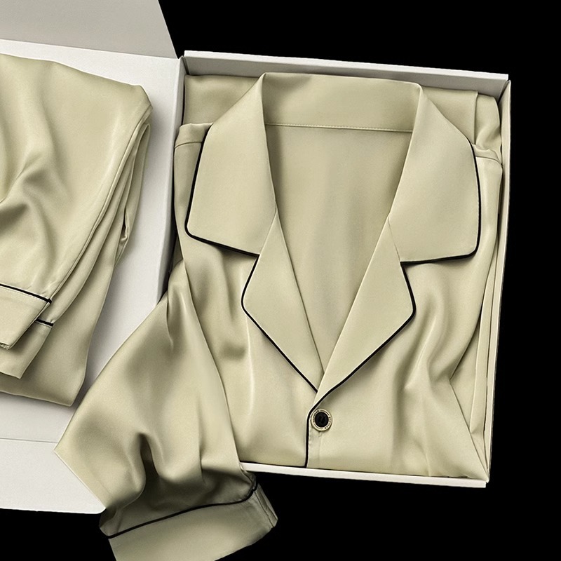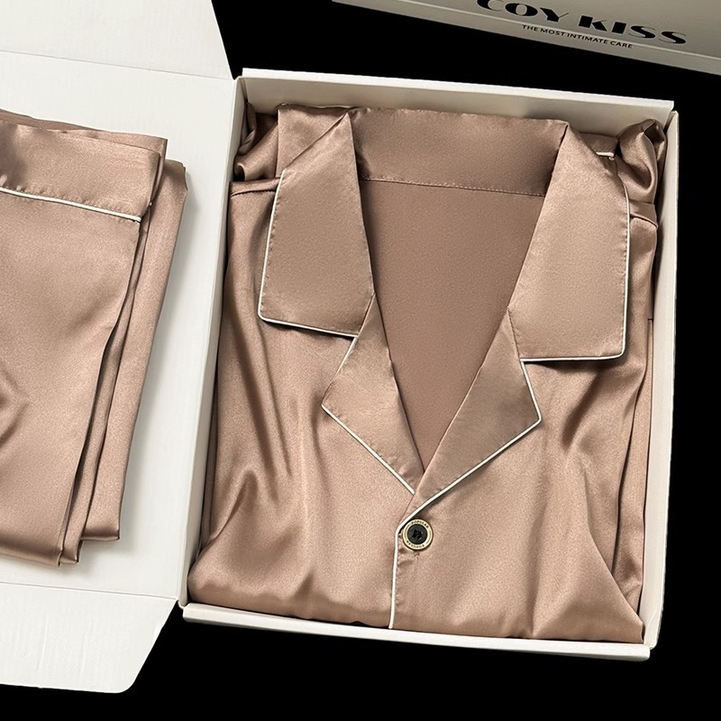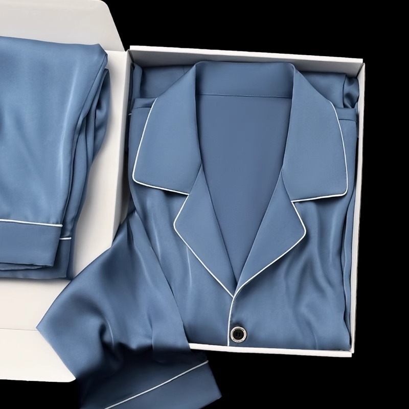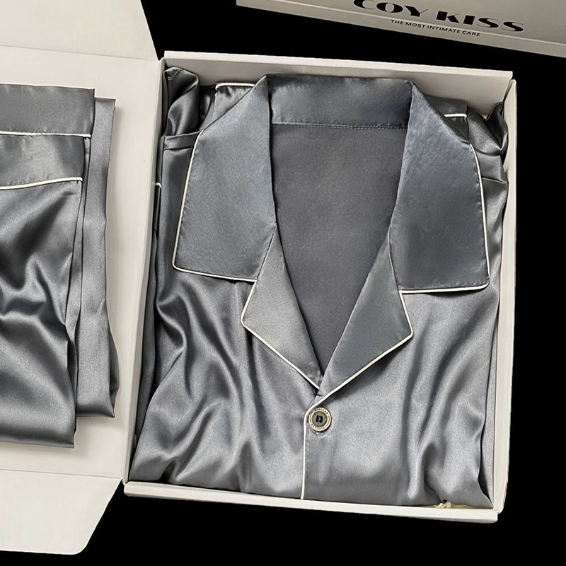 Главная страница > 2025 высококачественная шелковая пижама мужская весна и осень с длинными рукавами шелковая шелковая летняя цветная домашняя коробка подарочная коробка