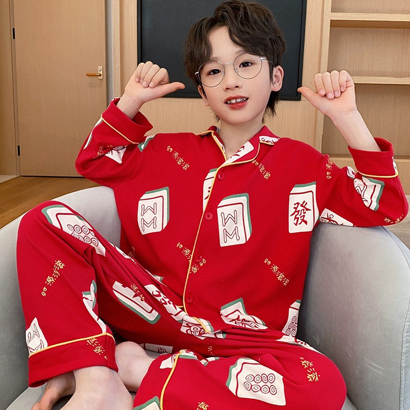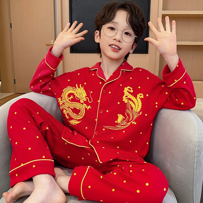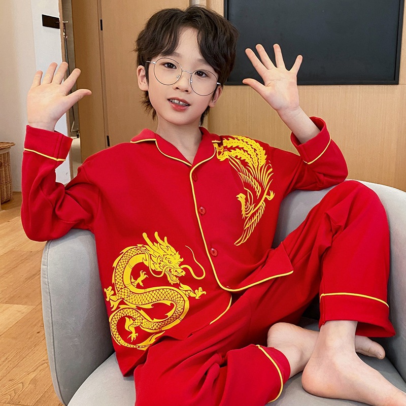 Строго отобранные детские пижамные мальчики весной и осенью хлопчатобумажные красные натальные мальчики года дракона