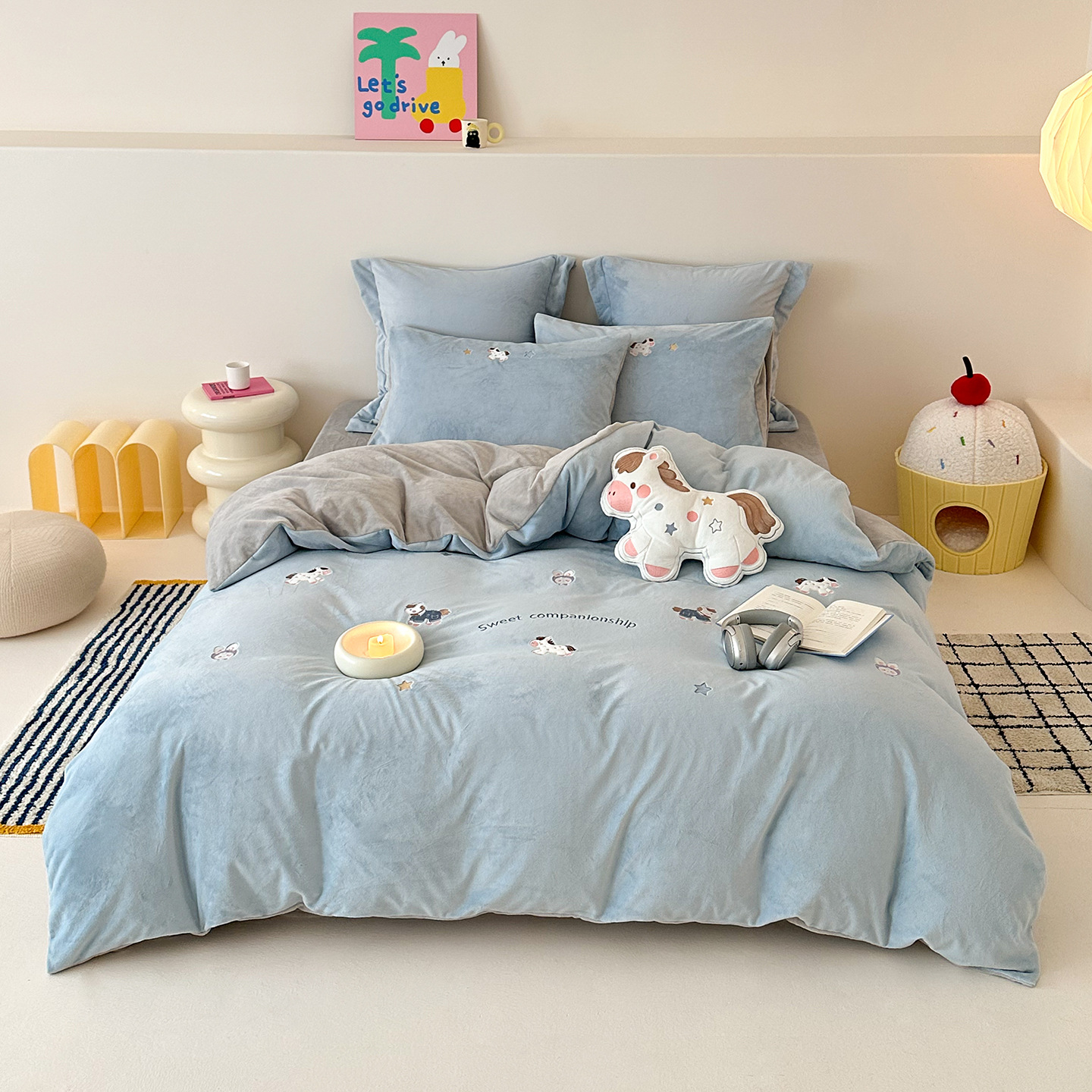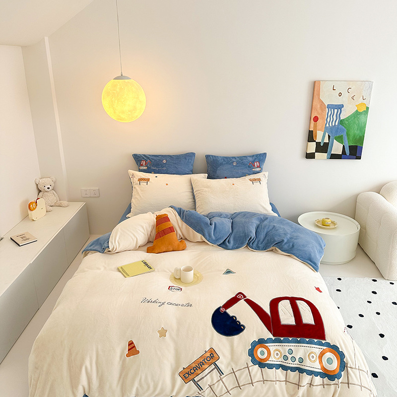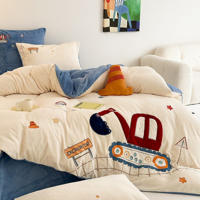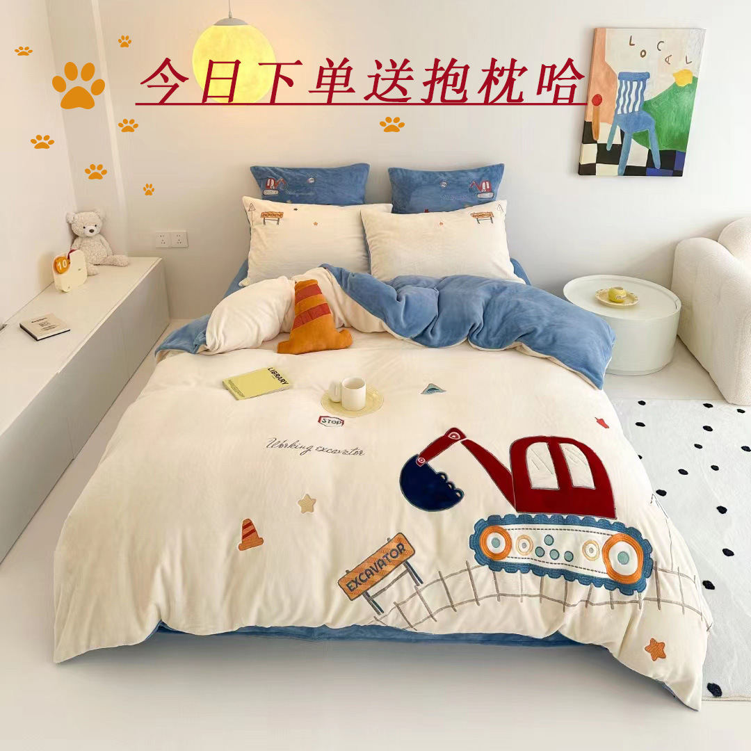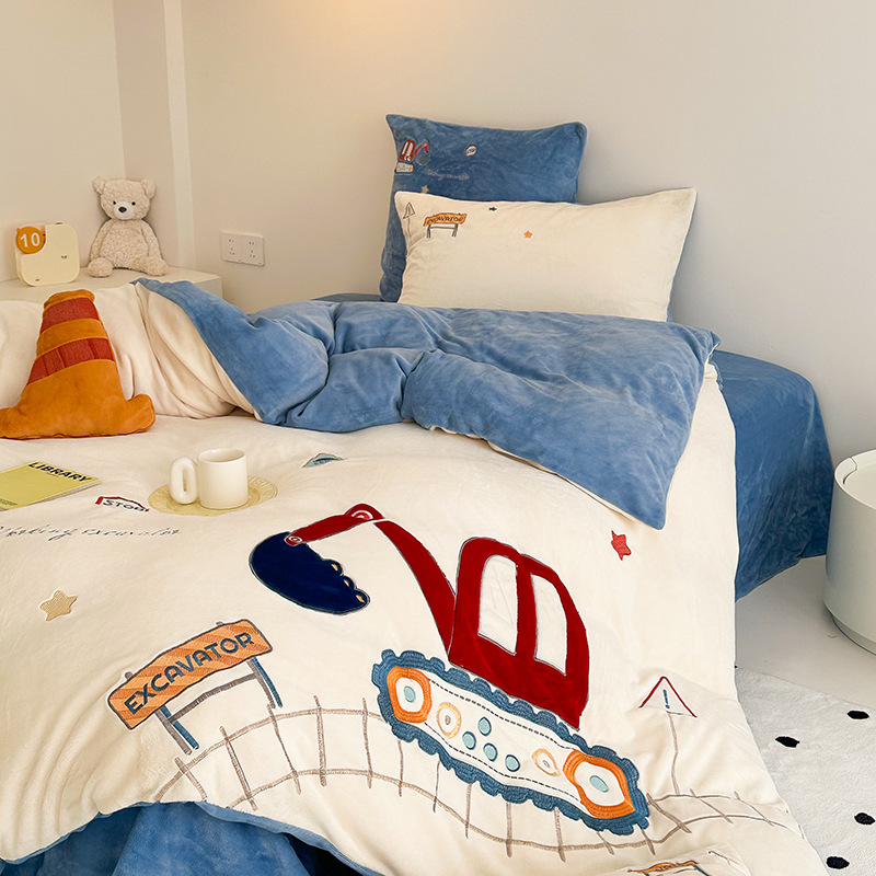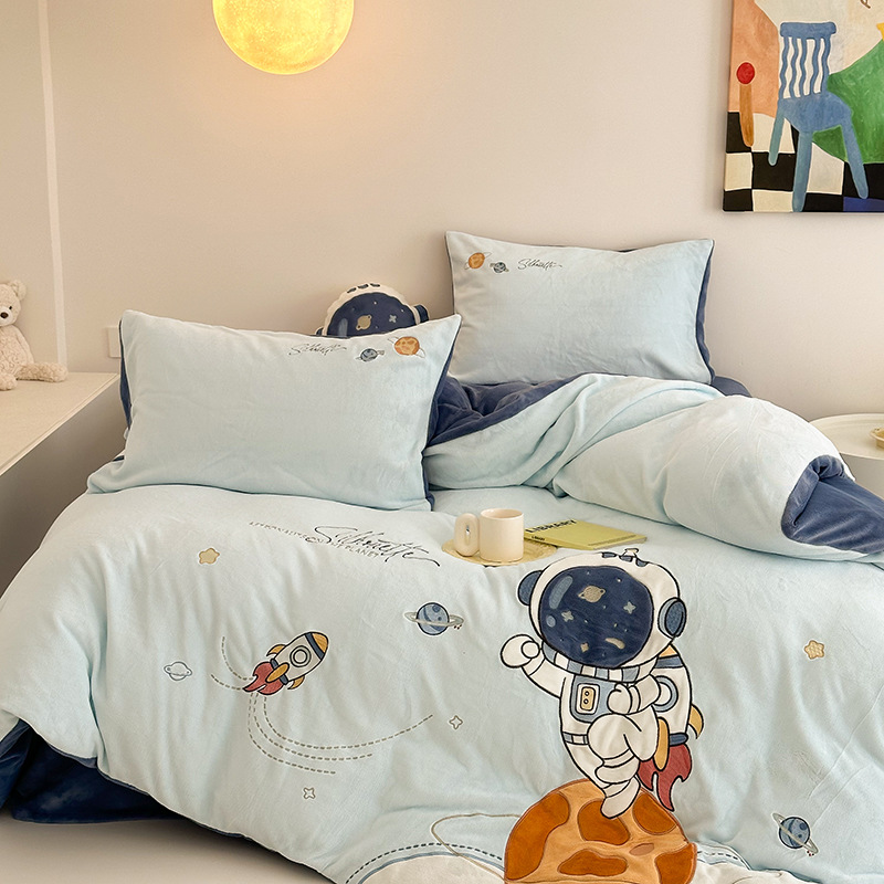 Главная страница > Зимний утолщение, полное матирование, детский набор из четырех частей, мультяшный вышивка, постельное белье, набор из четырех частей