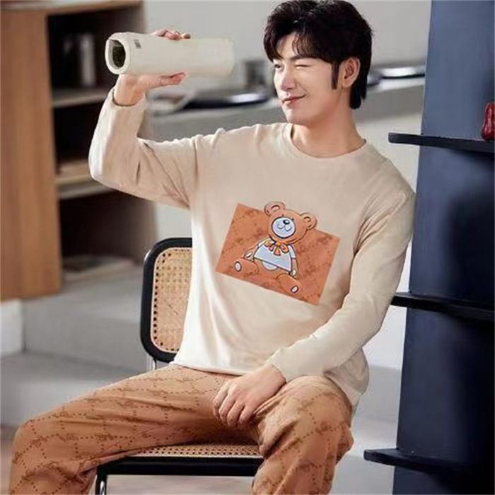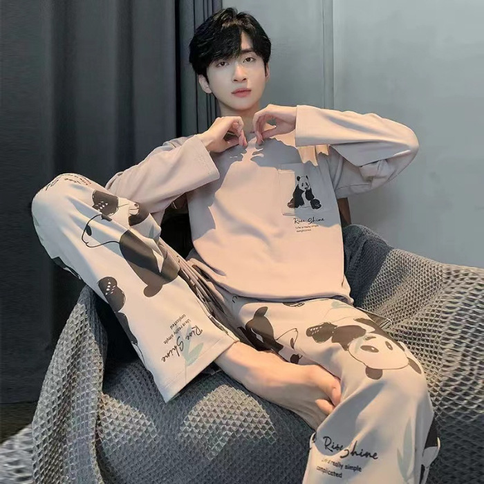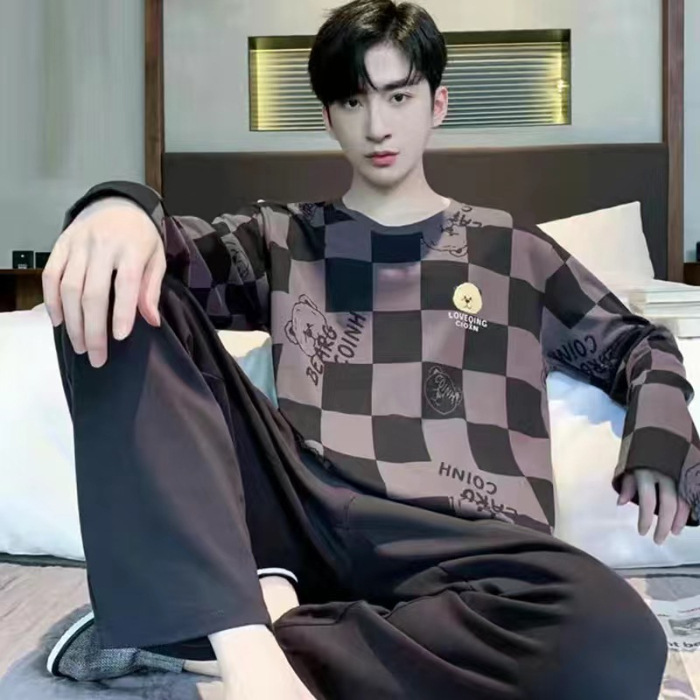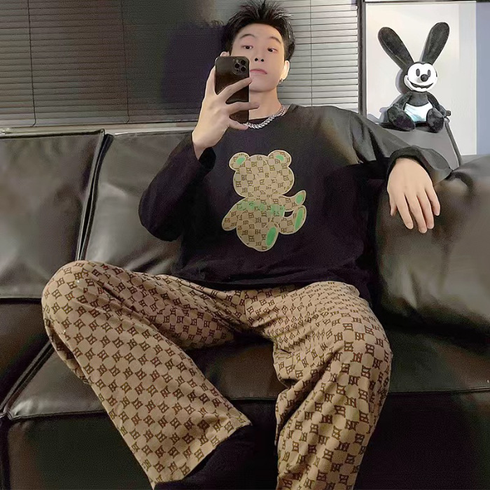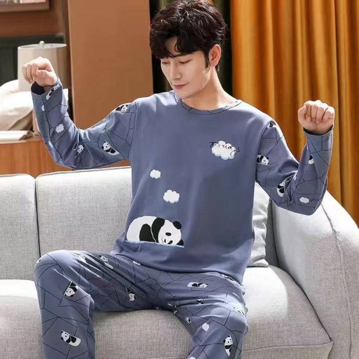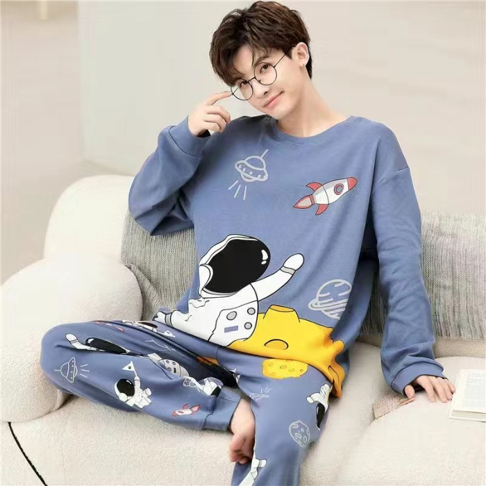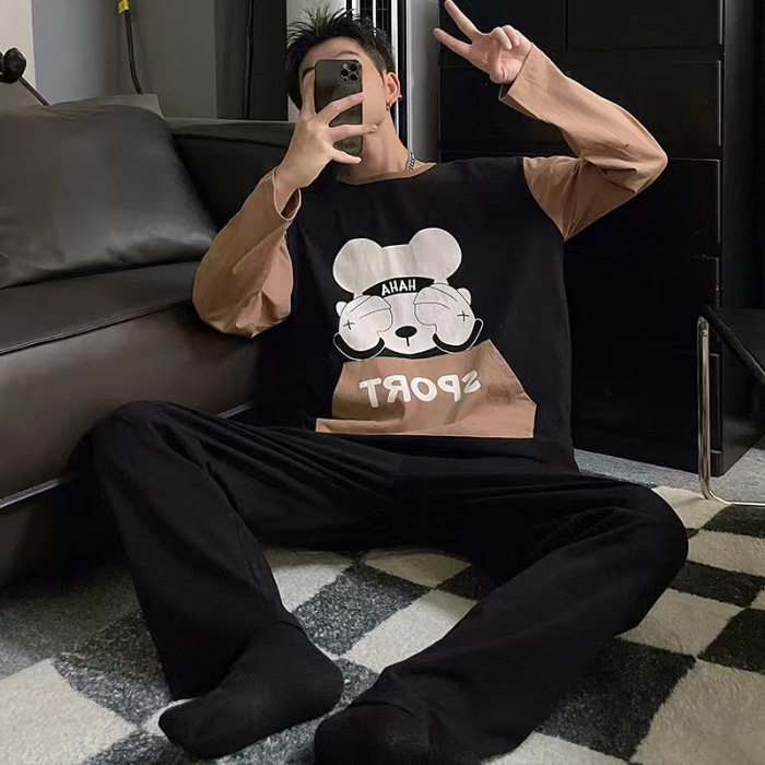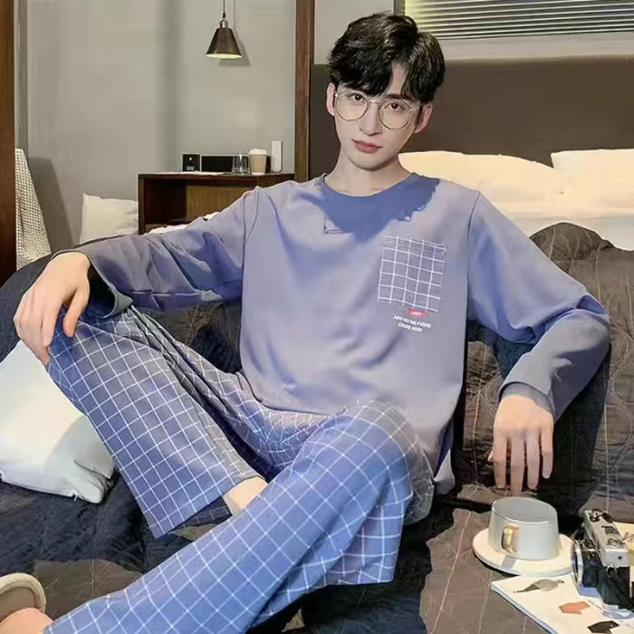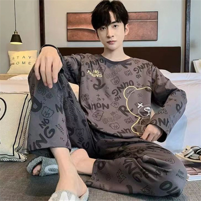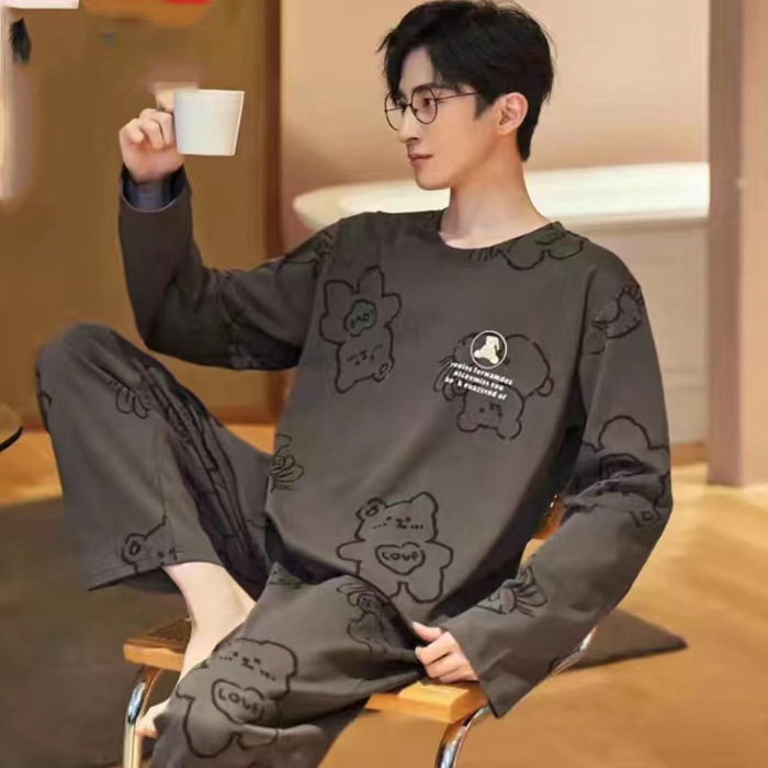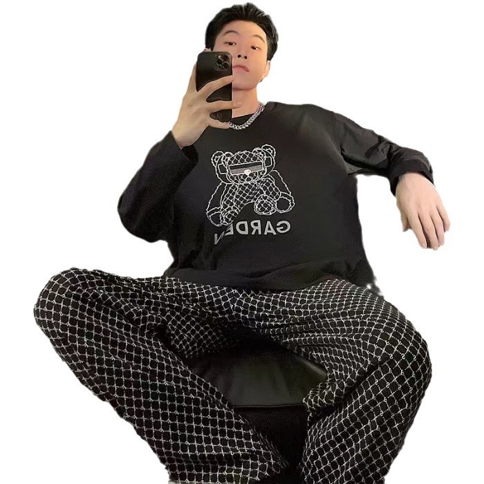 Пижама большого размера для мужчин весна и осень новые пуловера с длинными рукавами свободная корейская версия досуга может носить домашнюю одежду
