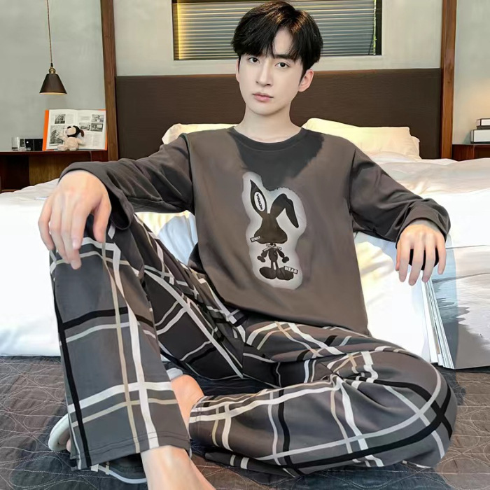 Главная страница > Пижама большого размера для мужчин весна и осень новые пуловера с длинными рукавами свободная корейская версия досуга может носить домашнюю одежду