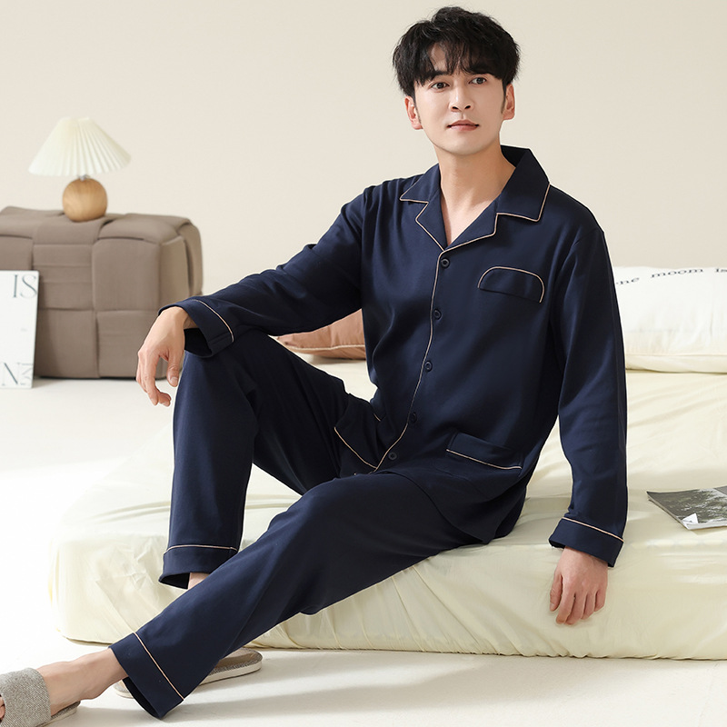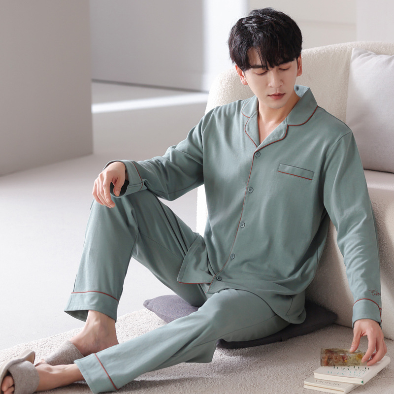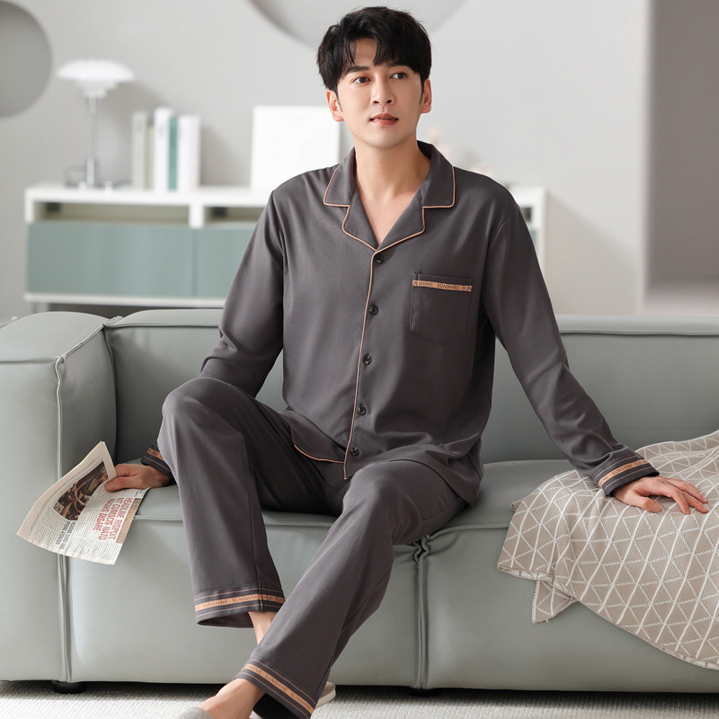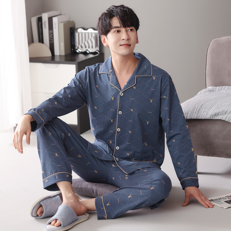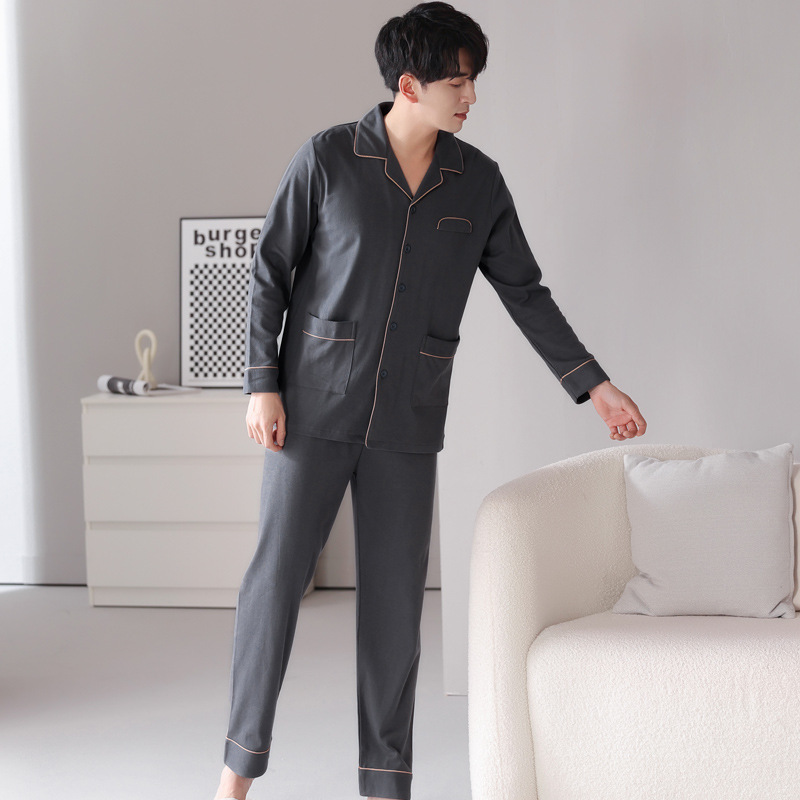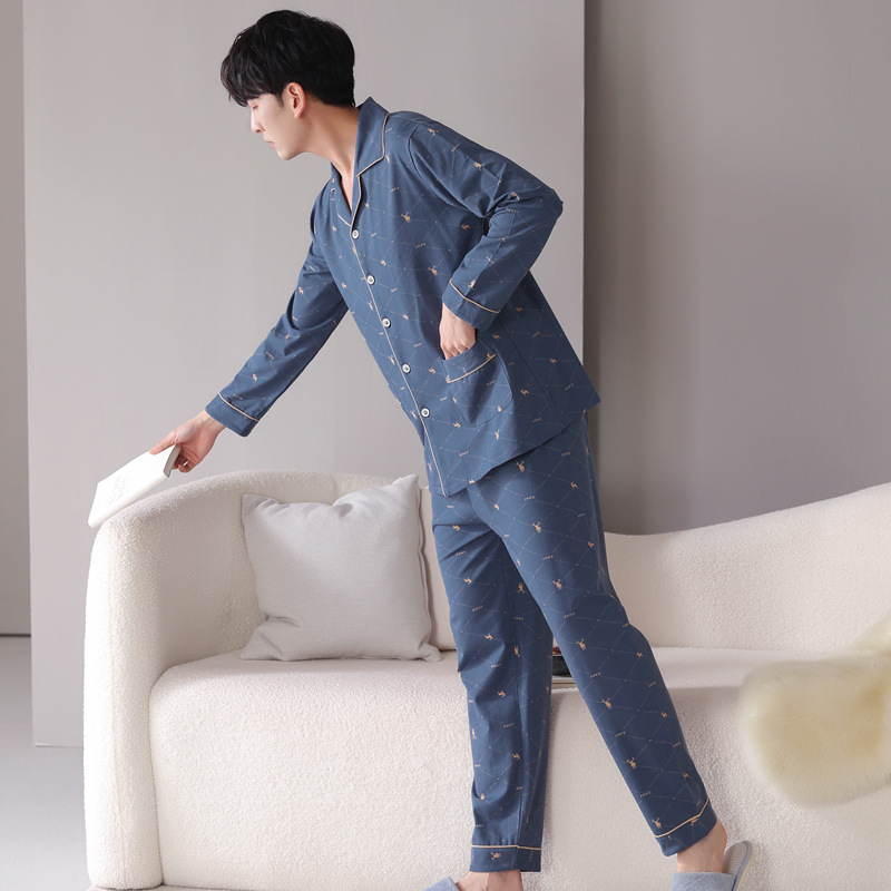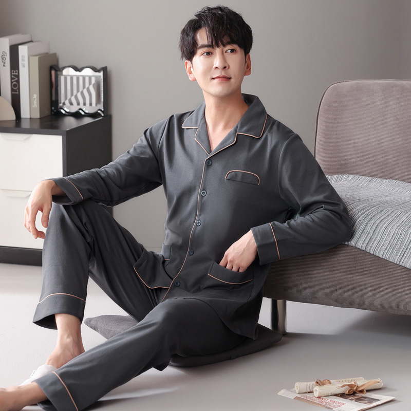 Главная страница > Осенне-зимние пижамы, мужская хлопковая одежда с длинными рукавами и лацканами, роскошная домашняя одежда для подростков, верхняя одежда, Пижамный костюм