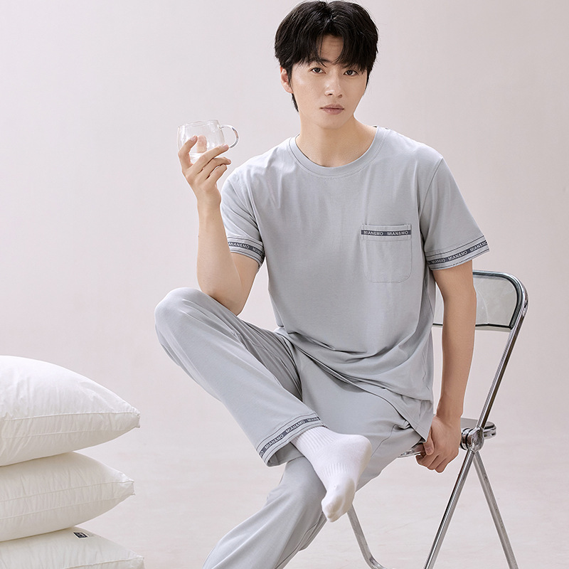 Главная страница > Весенняя и летняя пижама Мужские брюки с короткими рукавами брюки с круглым вырезом