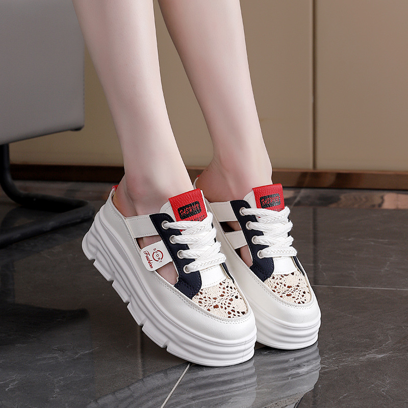 Главная страница > Дышащие наружные тапочки женские туфли 2025 Летние полые толстые подошвы увеличены внутри тканые туфли повседневные сандалии 709