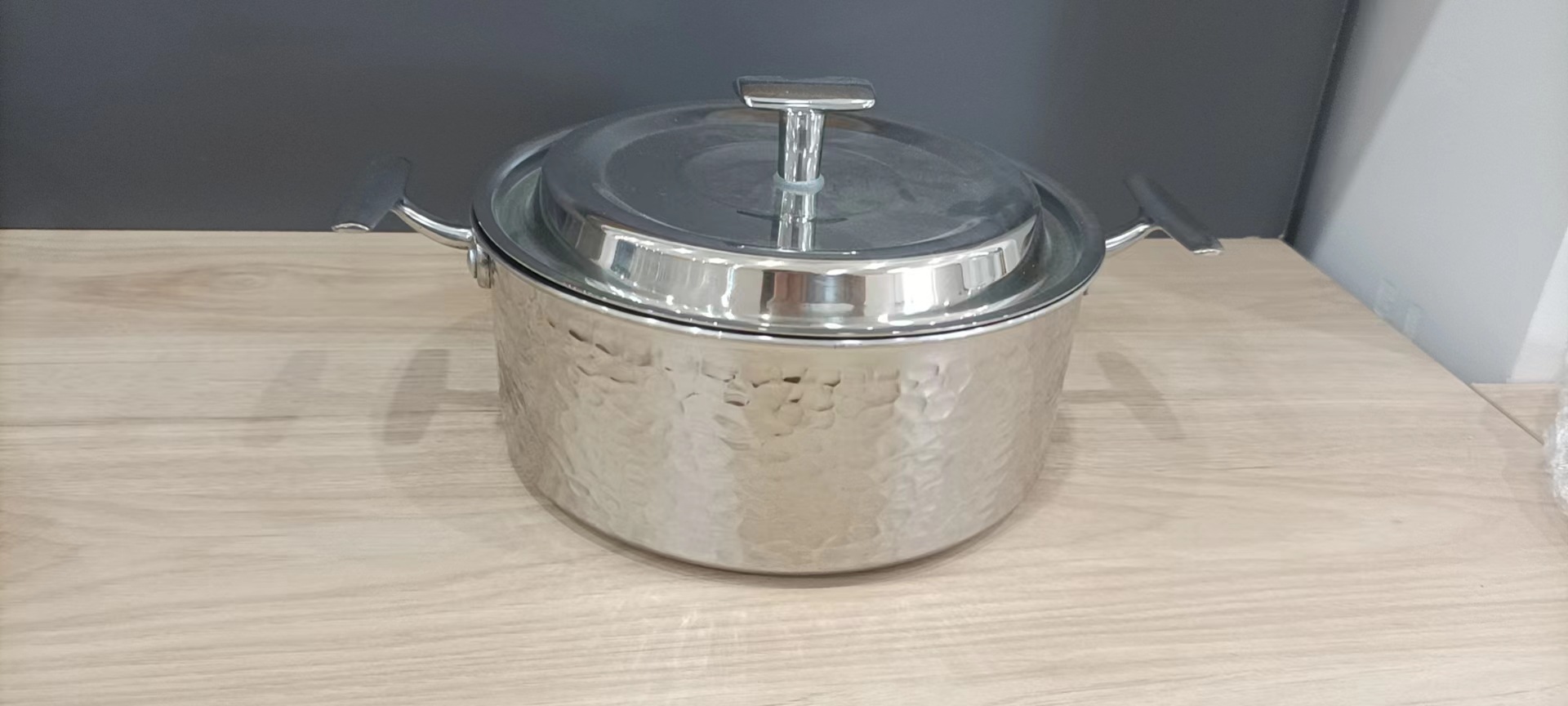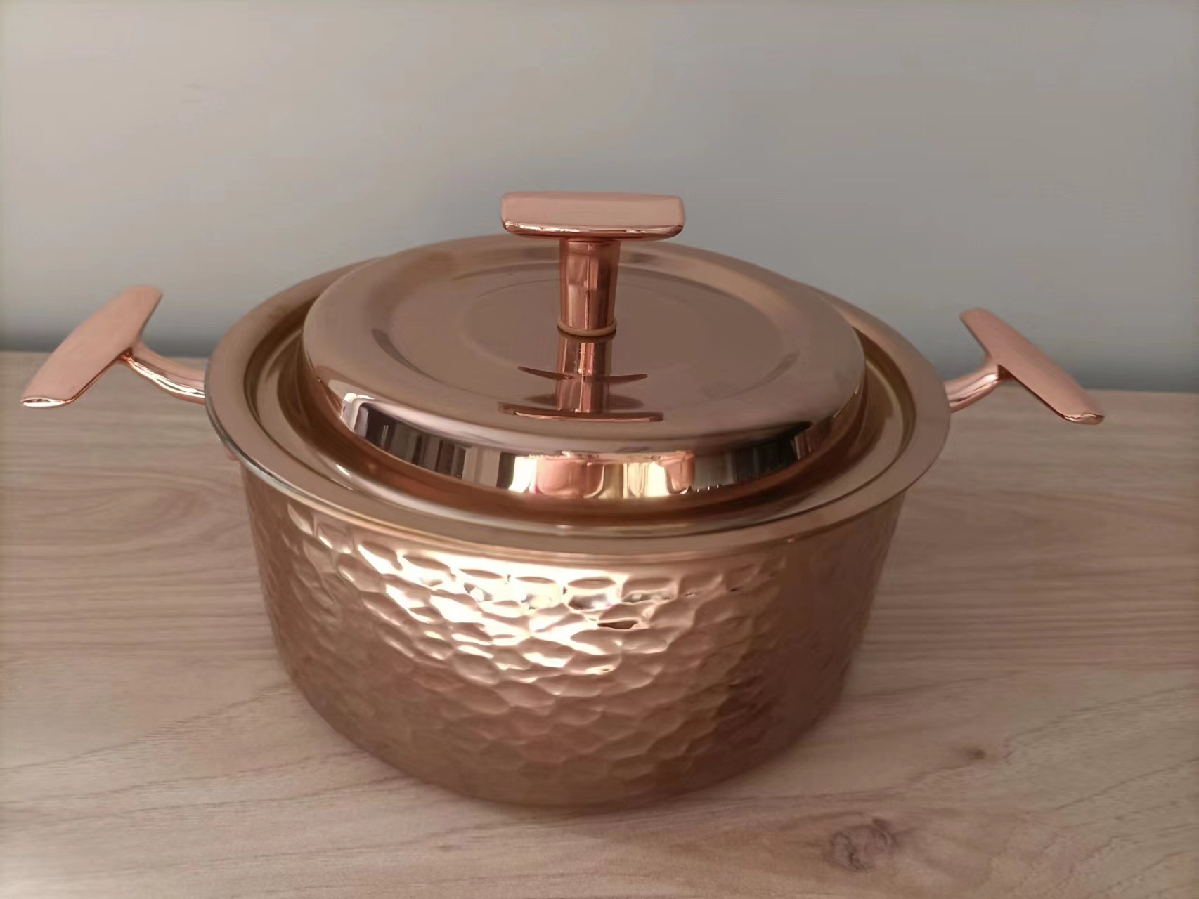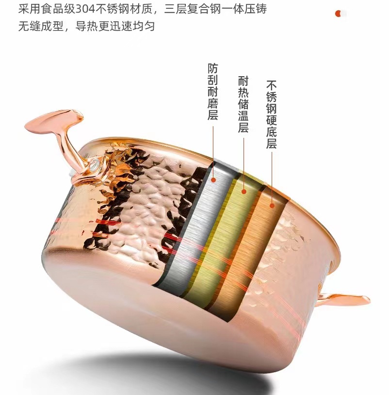 Главная страница > Высококачественная плита для шведского стола из нержавеющей стали Гостиничная Коммерческая спиртовая плита Трехслойная стальная утолщенная молотковая точка бинауральная мелкая суповая кастрюля