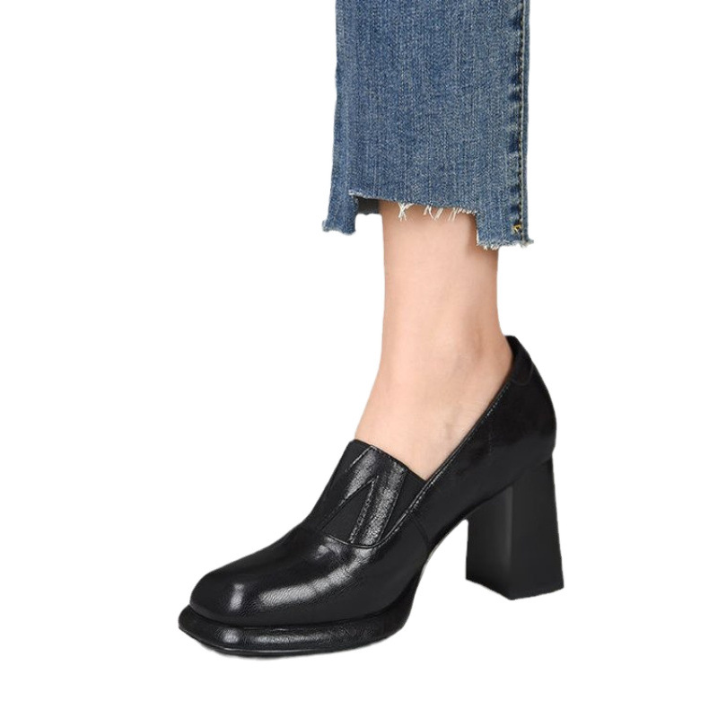 Главная страница > Водонепроницаемый стол одиночные туфли 2025 новая черная мода квадратная голова сплошной цвет толстый подошв толстые каблуки