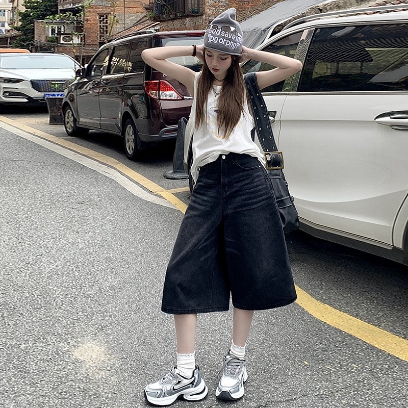 Главная страница > Прямые черные джинсовые шорты женские свободные широкие ноги летом 2024 года тонкие дикие укороченные американские шорты