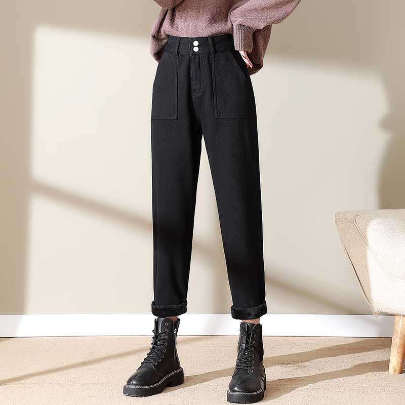 Ретро Харун джинсы женские осень-зима новый бархат утолщает талию и покрывает тонкую папу брюки A2357