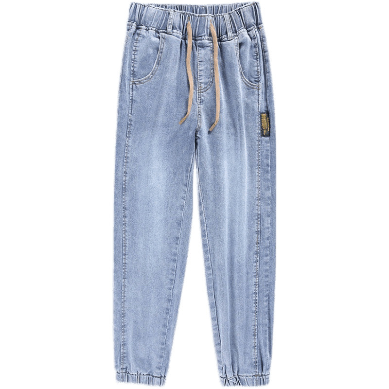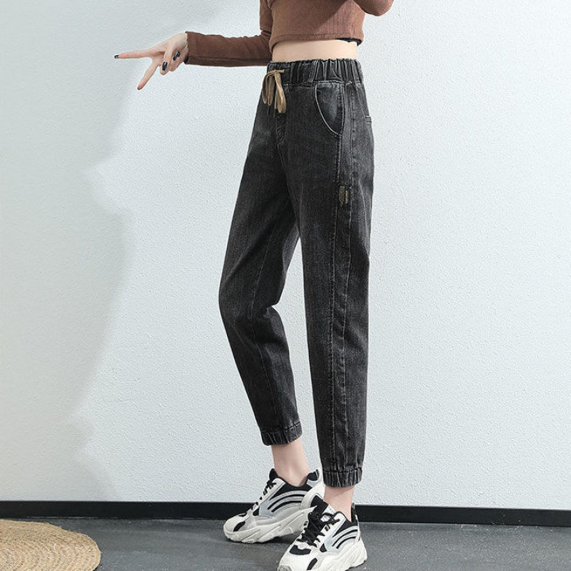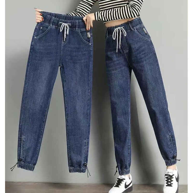 Главная страница > Женские джинсы с эластичной резинкой на талии, миниатюрные, в стиле джоггеров, укороченной длины, весна и осень 2025 года, большие размеры, свободные прямые брюки-шаровары для папы.
