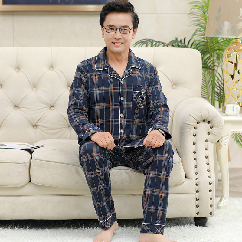 Главная страница > Пижамы мужские из чистого хлопка с длинными рукавами, осенне-зимний кардиган, свободный комплект домашней одежды большого размера для папы среднего и пожилого возраста