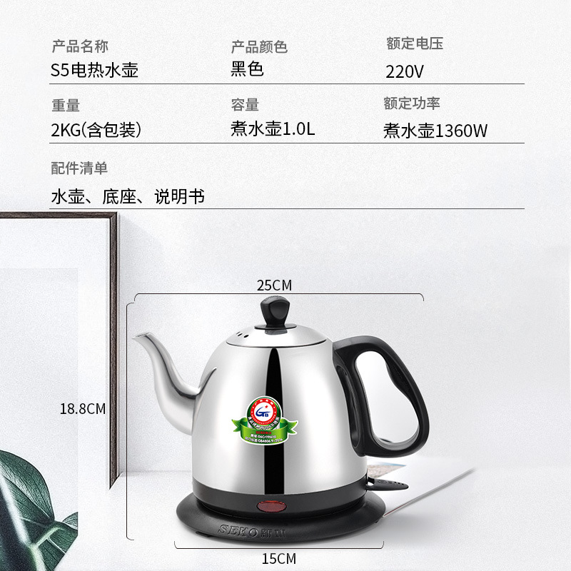 Seko/New Gong S5 Электрический чайник бытовой автоматический электрический чайник 304 нержавеющая сталь электрический чайник чайник быстрый чайник