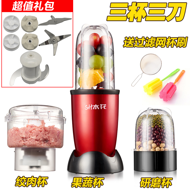 (Усиленный двигатель) 3 чашки и 3 ножа, бесплатная щетка для чашки фильтра.
